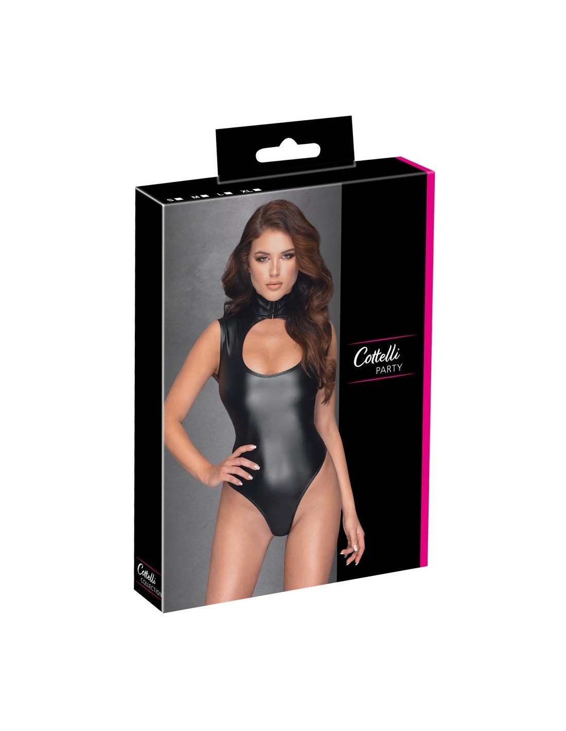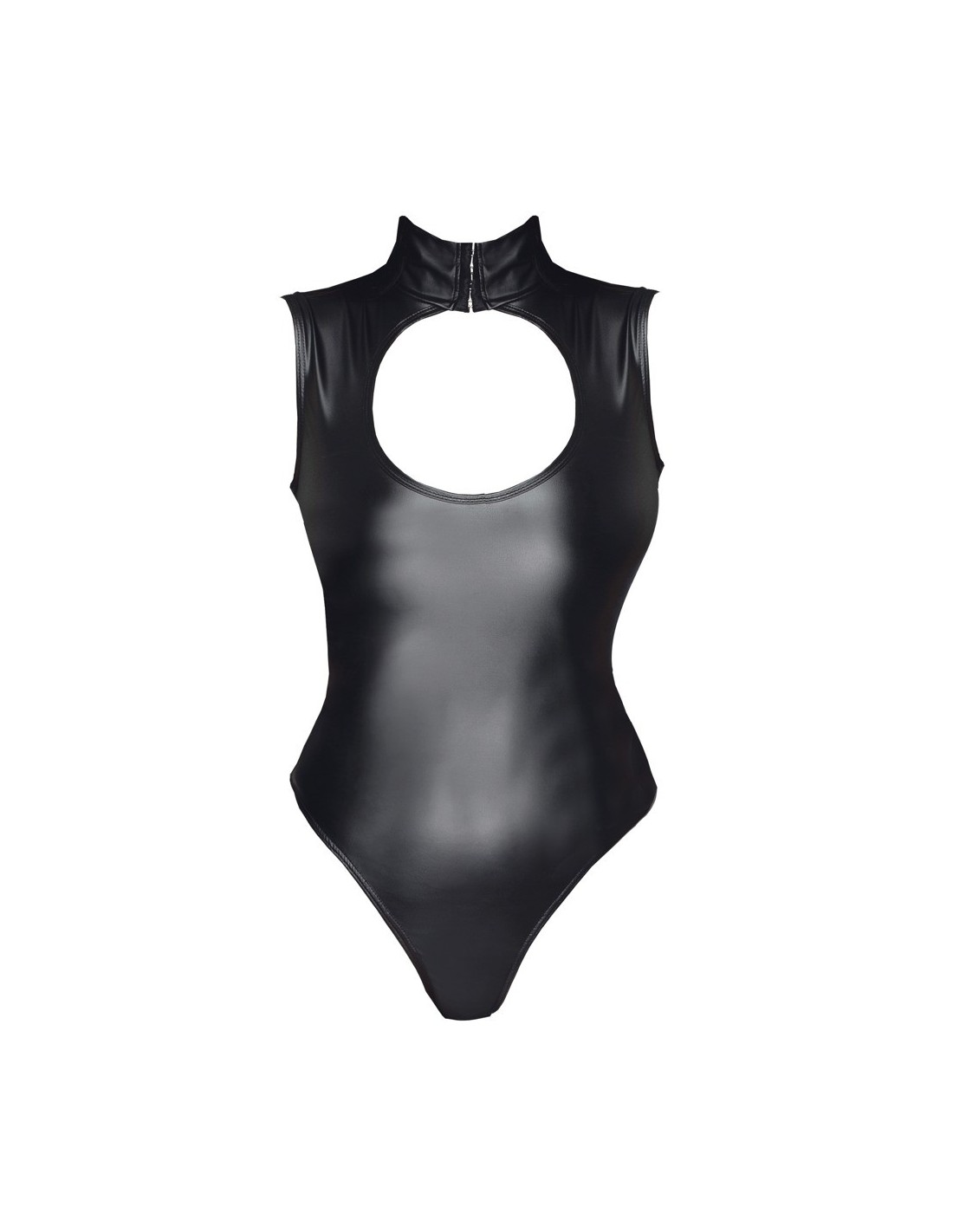 To body w stylu string, które odsłania plecy i ma wyjątkowo wysokie nogawki. Dodatkowo, w okolicach kroku znajdują się zatrzaski, ułatwiające korzystanie z tego produktu. Największym atutem jest duże wycięcie w okolicy dekoltu, które dodaje Ci seksapilu i podkreśla Twoje atuty. Dodatkowo, stójka posiada zapięcie na haczyk z przodu, które dodaje elegancji.