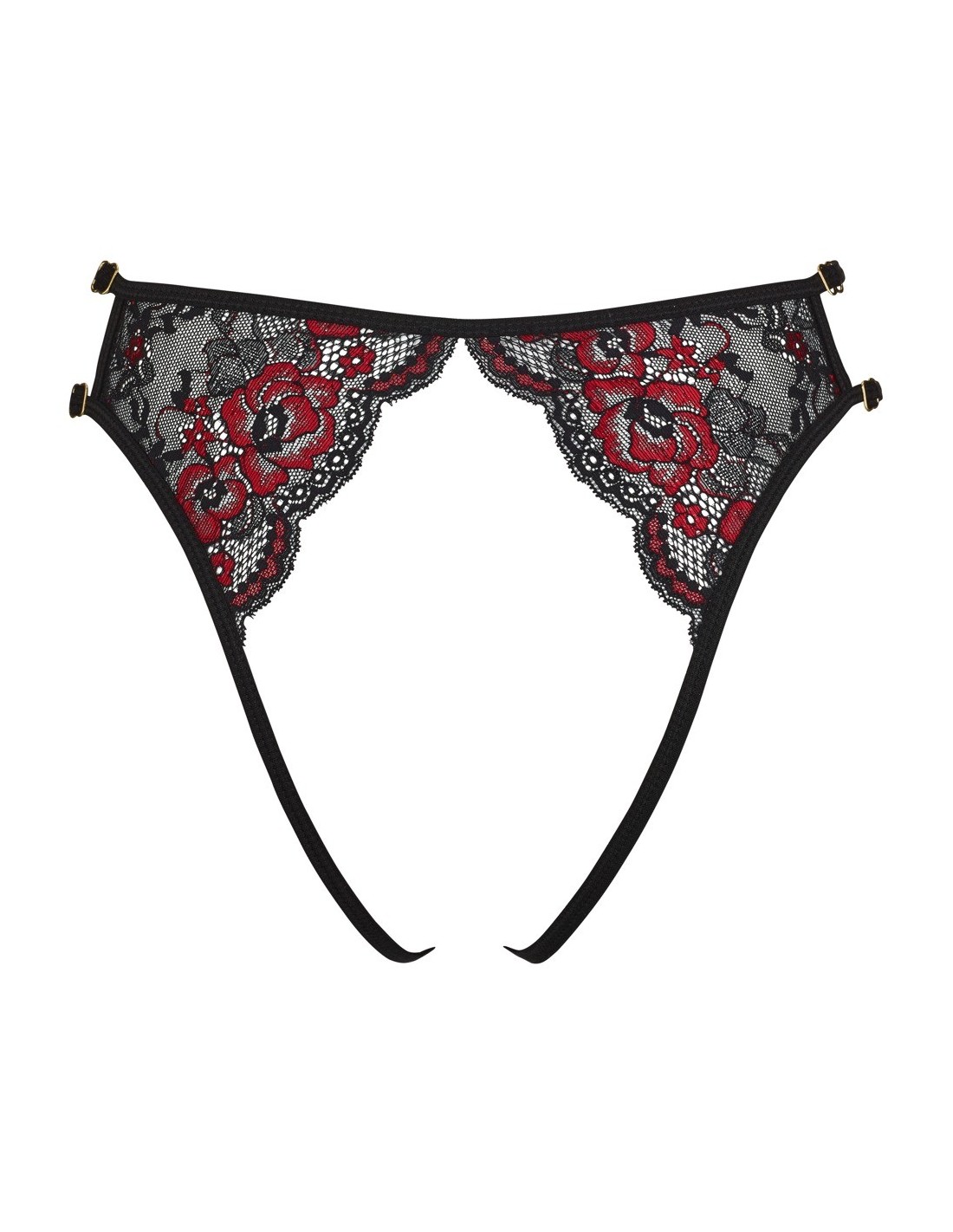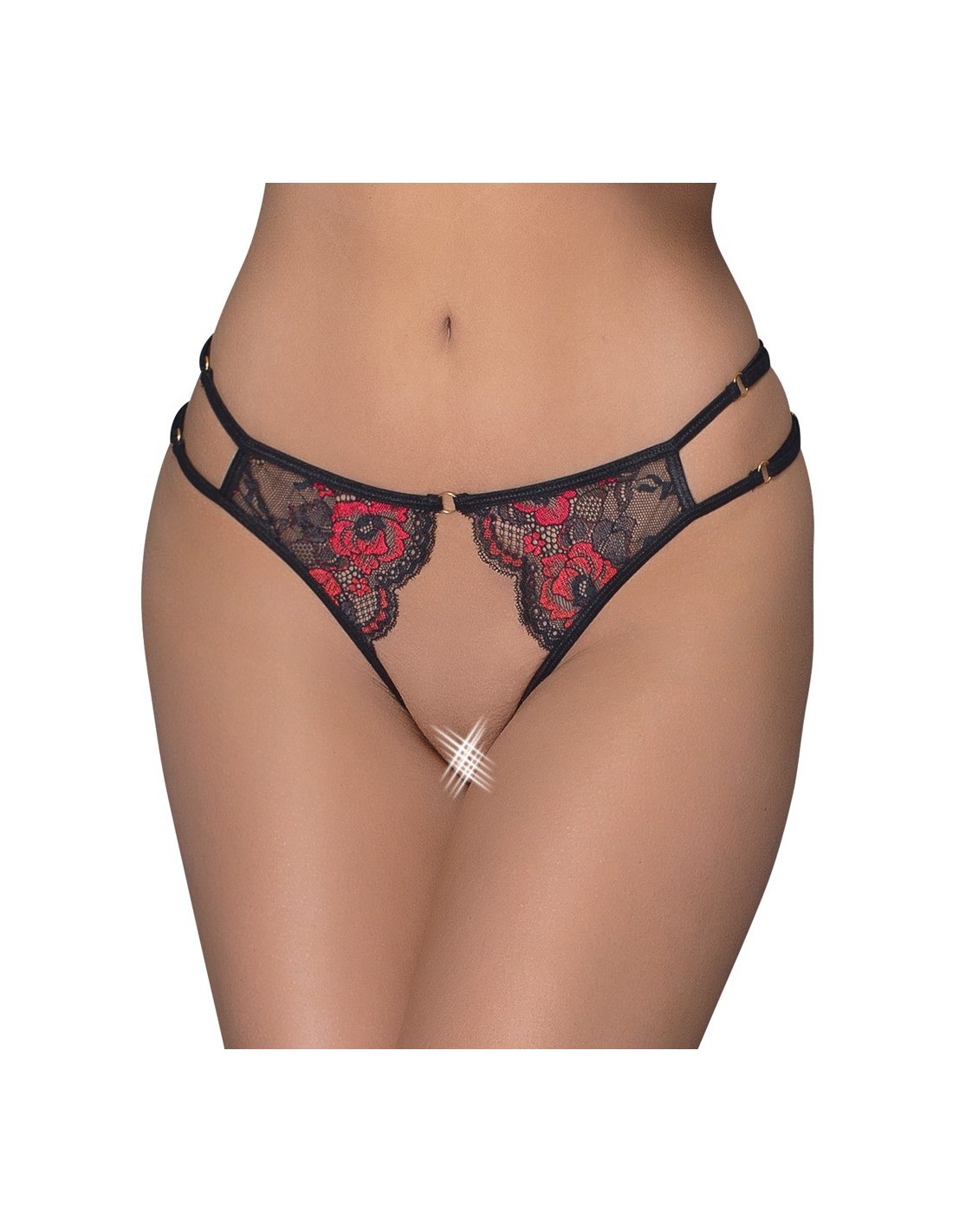 Nasze figi wyróżniają się nie tylko zmysłowym krojem, ale także delikatnymi koronkami, które w dwóch kolorach prowadzą wzrok Twojego partnera prosto w najbardziej ekscytujące miejsca. Otwarty krok i pośladki kuszą i zachęcają do odkrywania nowych doznań. Dodatkowe paski po bokach nie tylko dodają uroku, ale także można je regulować, aby zapewnić idealne dopasowanie.