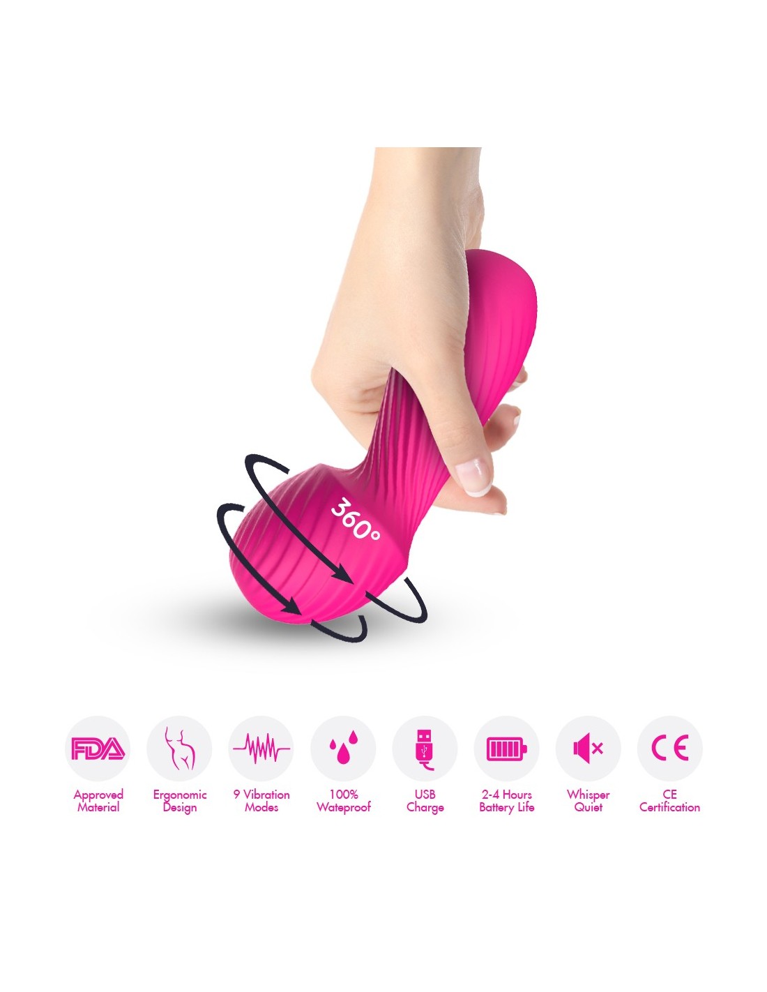 Nasz masażer został wyposażony w ergonomiczny uchwyt, który zapewni Ci najwyższy komfort użytkowania. Niezależnie od tego, czy masujesz całe ciało, czy skupiasz się na konkretnych punktach, Dazzle Różowy sprawi, że poczujesz się odprężona i zrelaksowana. Dodatkowo, główka masażera wygina się pod naciskiem, dostosowując się do Twoich potrzeb i zapewniając maksymalną przyjemność.