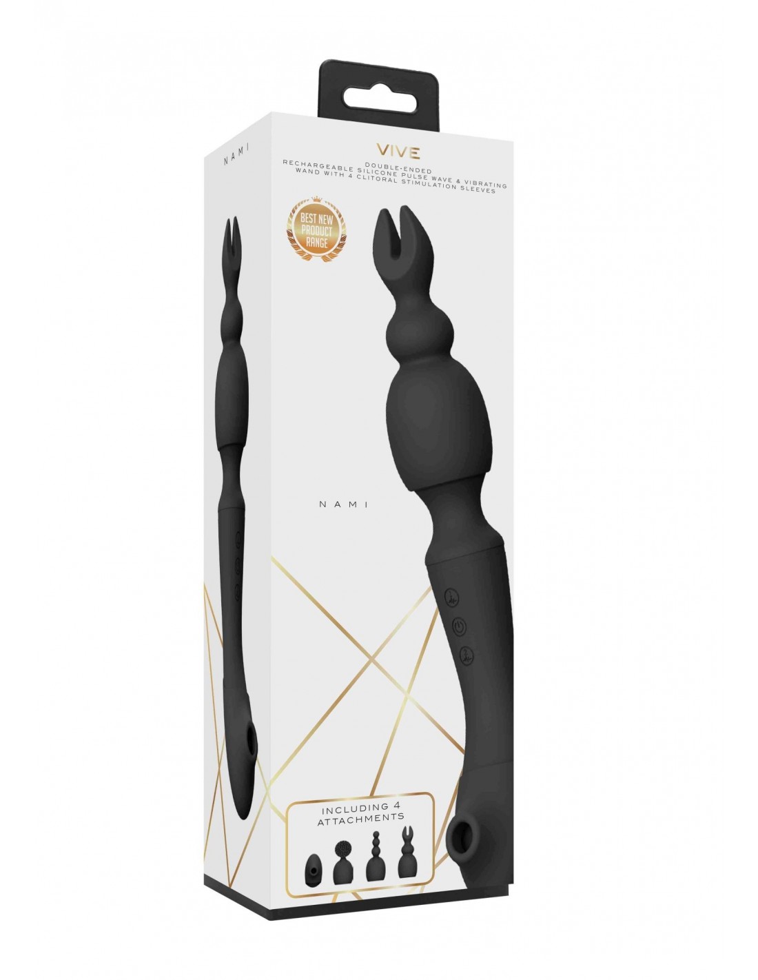 Nasza różdżka do masażu VIVE39 została wyposażona w cztery różne przystawki, które wzbogacają doznania. Trzy z nich są przeznaczone do bezpośredniej stymulacji łechtaczki, a czwarta, dzięki technologii fal powietrznych, stymuluje łechtaczkę ssaniem. To niezwykłe doświadczenie, które zapewni Ci niepowtarzalne orgazmy. Dodatkowo, masażer NAMI został wykonany z gładkiego silikonu medycznego, który jest hipoalergiczny i bezpieczny dla Twojej skóry. Jest również całkowicie wodoodporny, dzięki czemu możesz go używać pod prysznicem lub w wannie, by cieszyć się relaksującym masażem w każdej chwili.