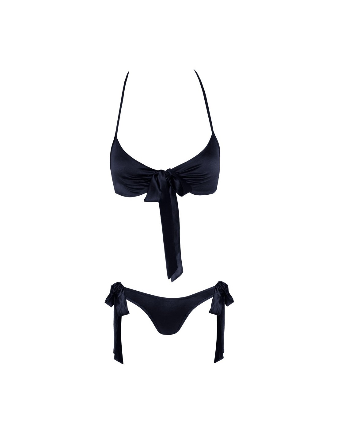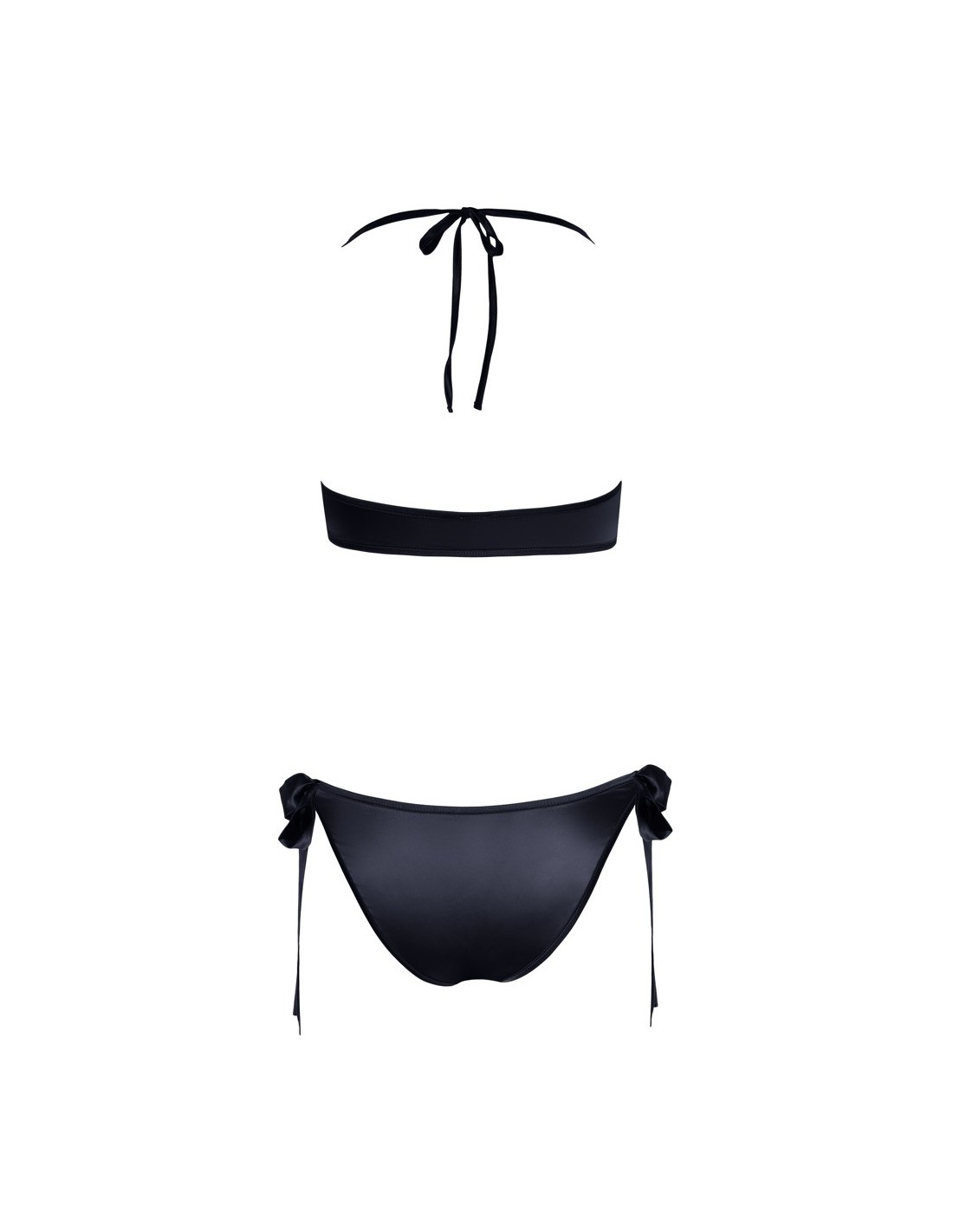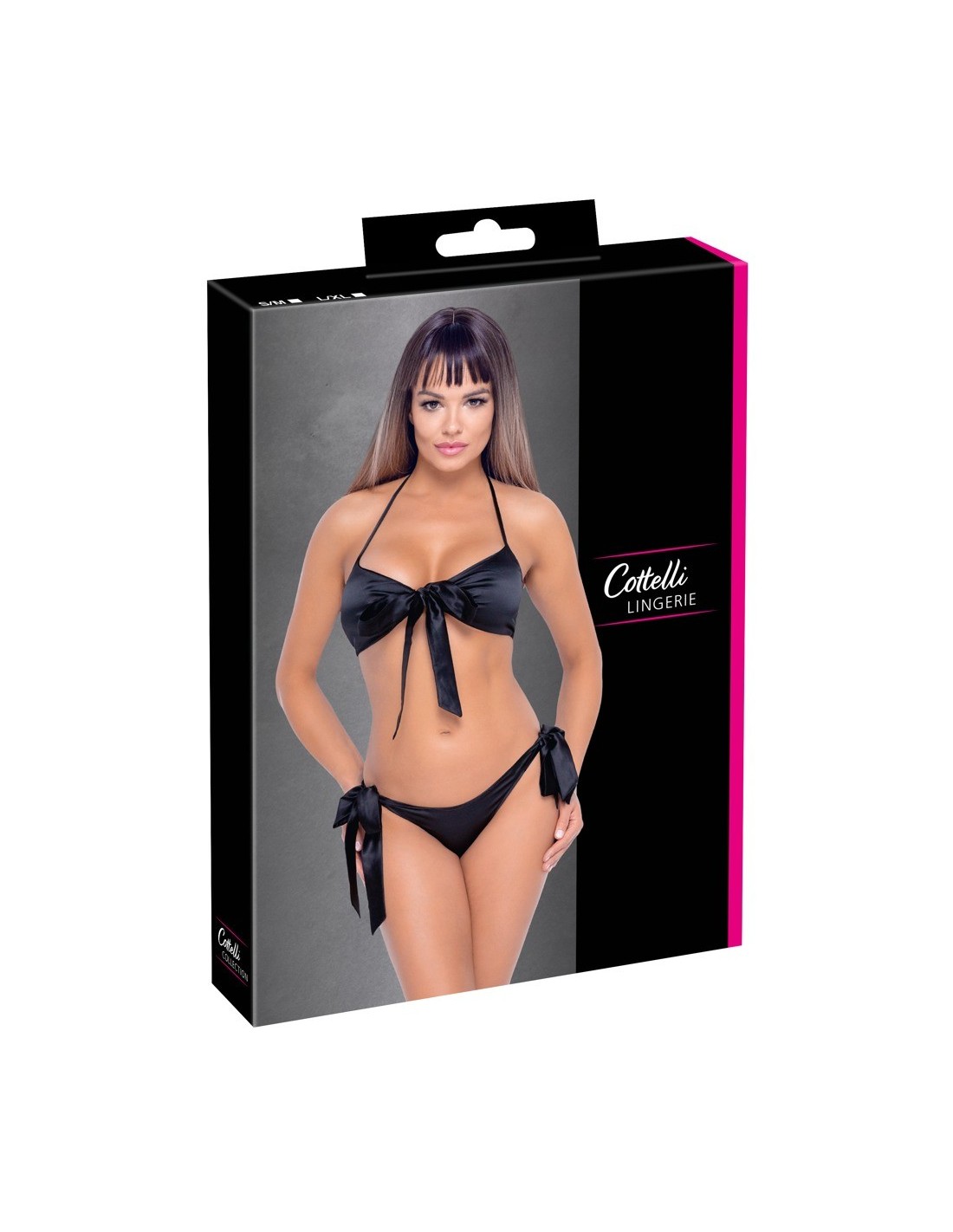 Ten kompletny zestaw bielizny erotycznej składa się z bezprzewodowego stanika i fig. Wykonane z miękkiego, jedwabistego i elastycznego materiału, zapewniają one nie tylko wygodę, ale także piękne podkreślenie Twoich krągłości. Stanik posiada wiązany na szyi dekolt oraz kokardkę, którą można rozwiązać jednym ruchem. Figi można zawiązać z boku, dodając im jeszcze więcej uroku.