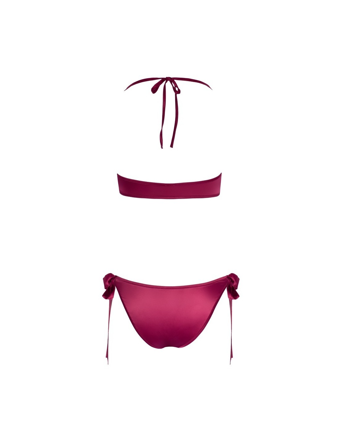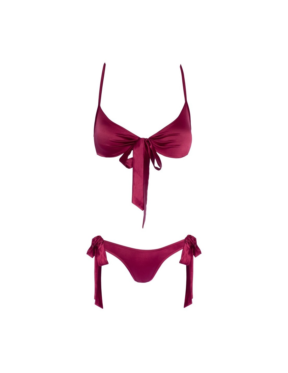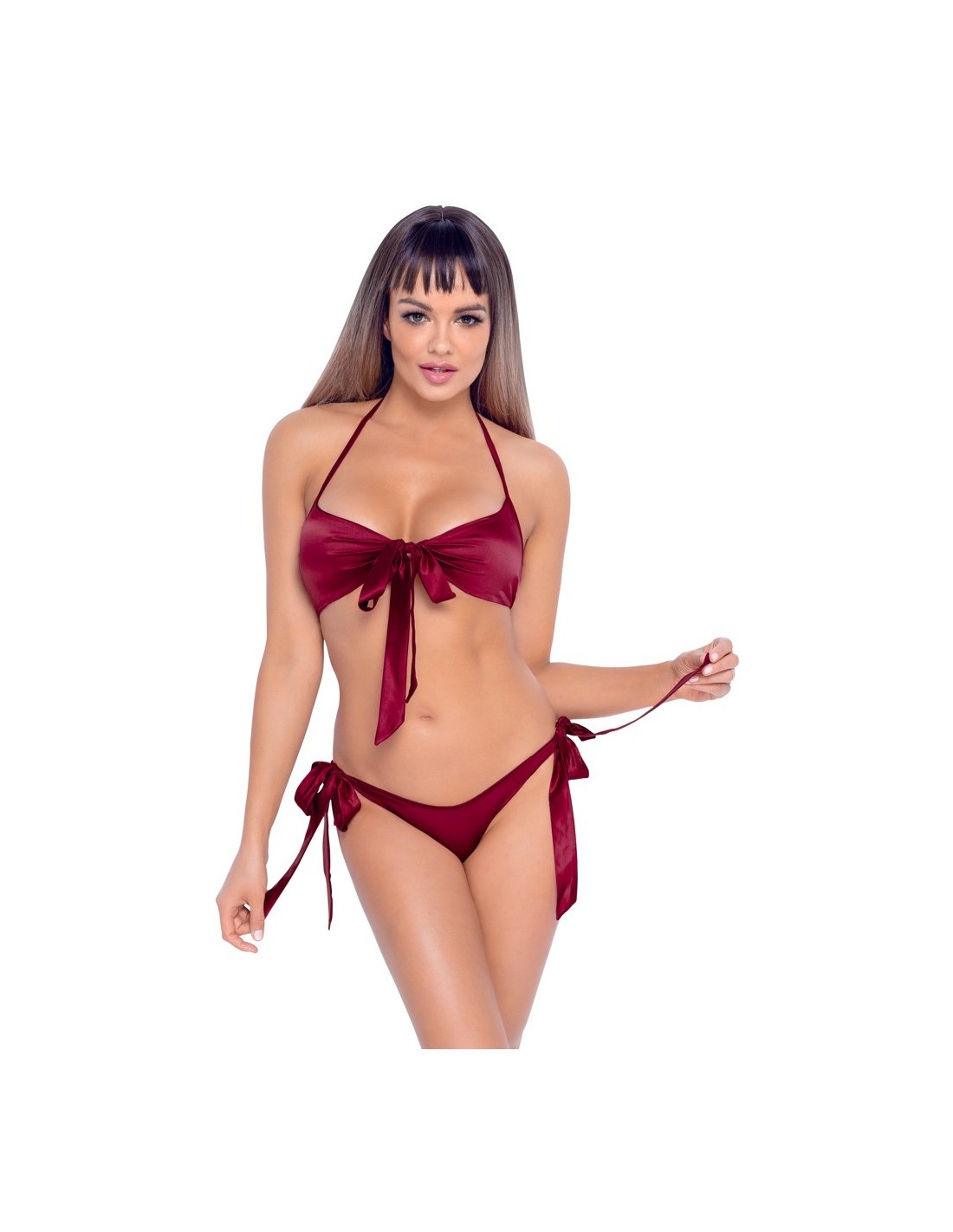 Ten komplet bielizny erotycznej został stworzony z myślą o Twojej wyjątkowej chwili intymności. Wyposażony w dekoracyjne kokardki, które można łatwo rozwiązać, ten komplet zapewnia niezapomniane doznania. Bezprzewodowy biustonosz ma wiązany na szyi pasek, a także kokardkę między miseczkami, którą można rozwiązać. Majtki również ozdobione są kokardkami po bokach, dodając jeszcze więcej uroku temu komplecie.