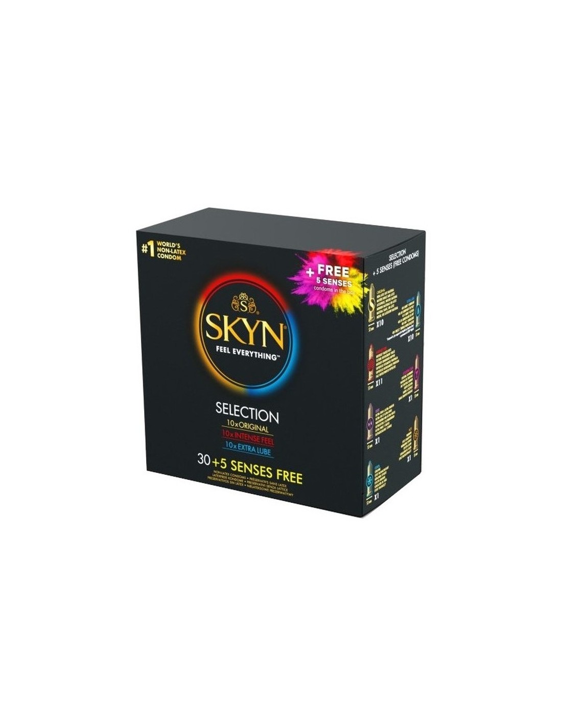 Zestaw UNIMIL_SKYN Feel Everything Selection 30 zawiera 10 sztuk prezerwatyw SKYN Intense Feel z wypustkami, 10 sztuk prezerwatyw SKYN Original klasycznych, 10 sztuk prezerwatyw SKYN Extra Nawilżanych, oraz po jednej sztuce prezerwatyw SKYN Intense Feel z wypustkami, SKYN Coctail Club - Daiquiri Passion smakowych i zapachowych, SKYN Elite ultra cienkich, SKYN z efektem chłodzącym oraz SKYN z efektem rozgrzewającym. To wszystko, czego potrzebujesz, aby odkryć nowe możliwości i spełnić swoje najskrytsze fantazje.