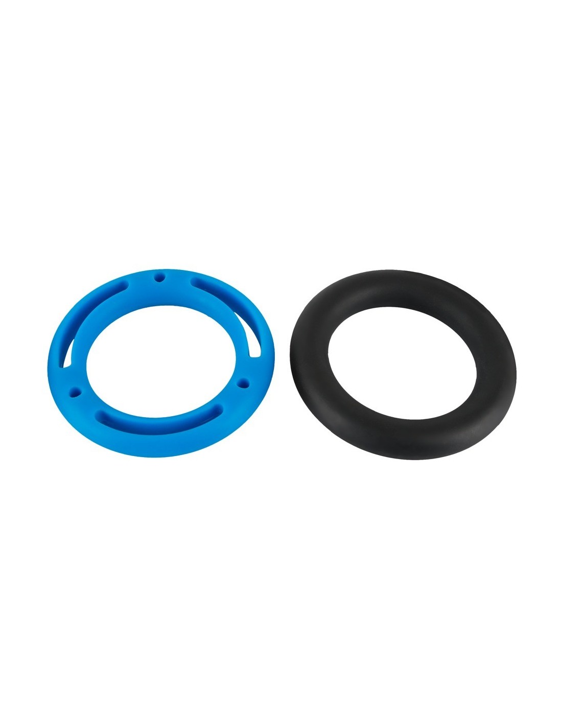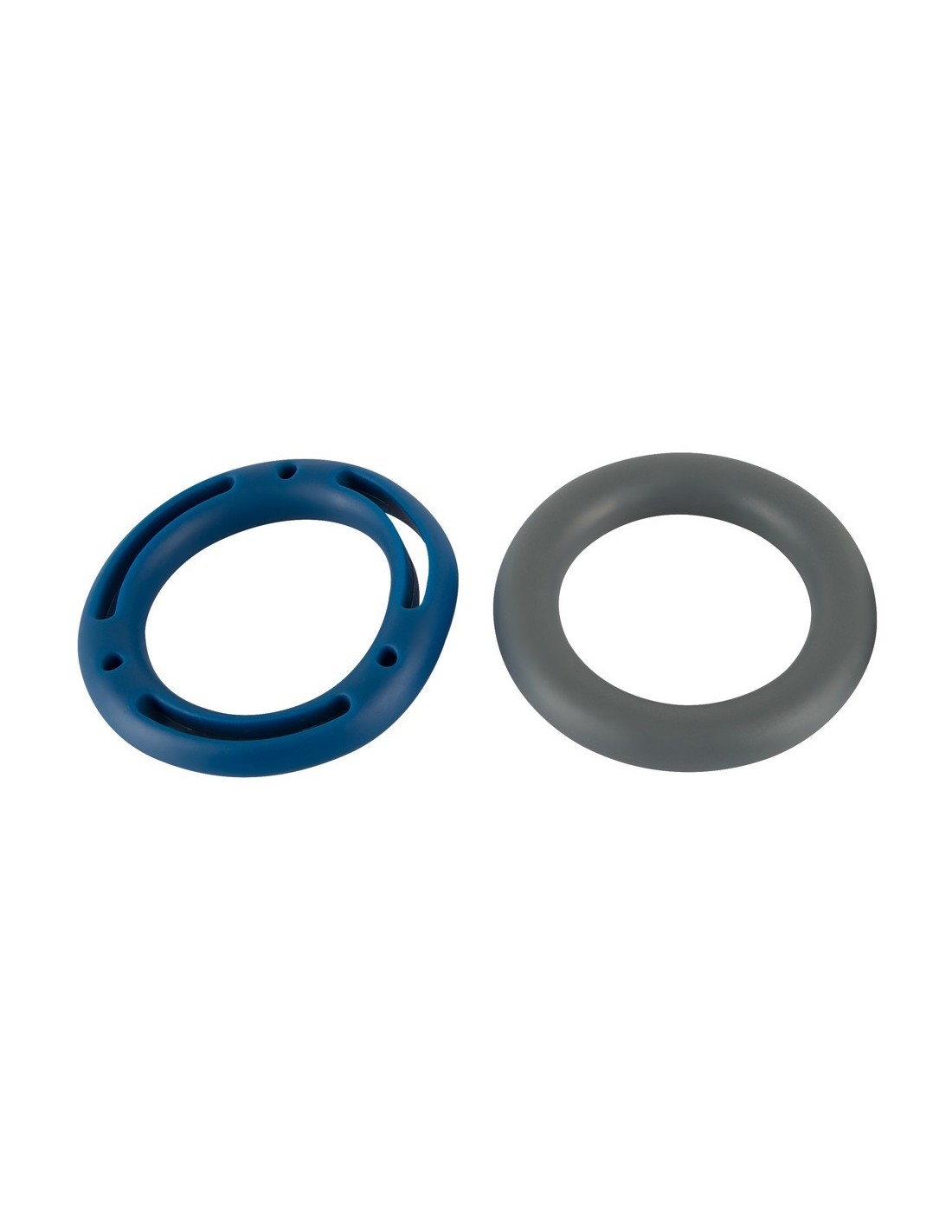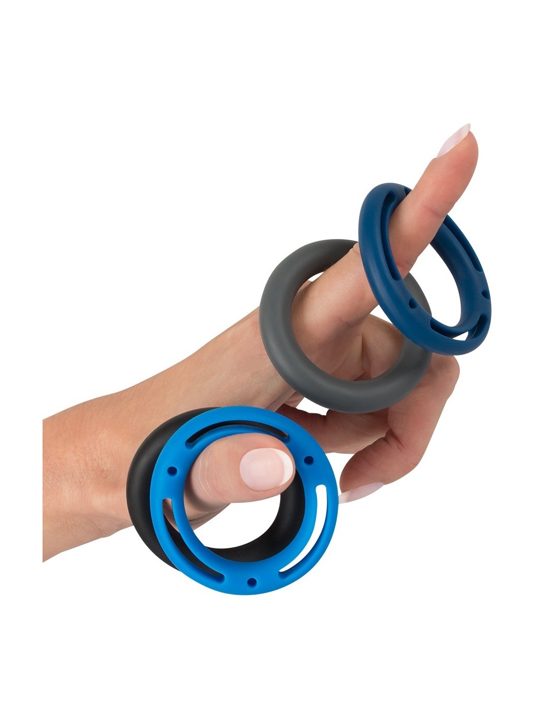 These tight-fitting yet wonderfully flexible rings provide the perfect fit, ensuring optimal blood congestion for a longer-lasting erection. Say goodbye to premature endings and hello to extended pleasure sessions. The set includes two rings, each with a unique design and color combination (light blue/dark blue/grey/black). Whether you prefer a smooth surface or one with tantalizing holes, you'll find the perfect ring to suit your desires.