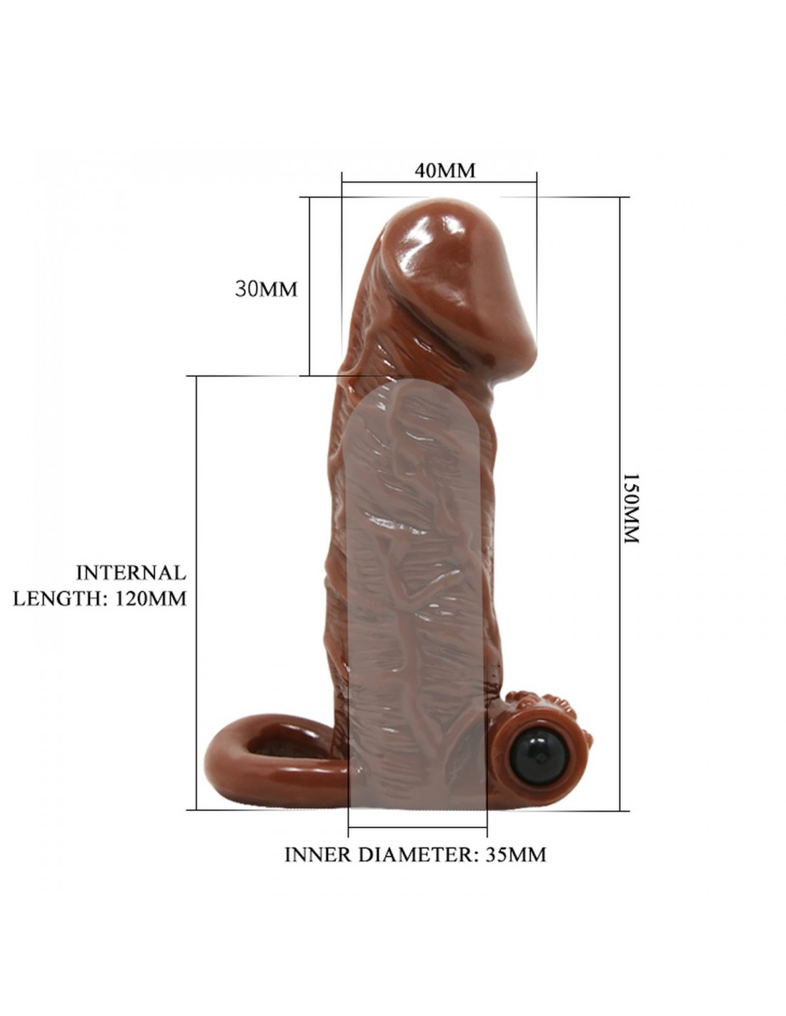 BAILE- BRAVE MAN, Vibration to nie tylko nakładka, która zwiększa rozmiar penisa i przedłuża erekcję. To także gwarancja niezwykłej przyjemności i niezapomnianych doznań. Wystarczy umieścić penisa w wygodnym, wydrążonym trzonie, który zapewnia doskonałe dopasowanie. Dzięki wyraźnie zaznaczonym żyłom i wystającej głowie, każde pchnięcie jest pełne magii i pasji.