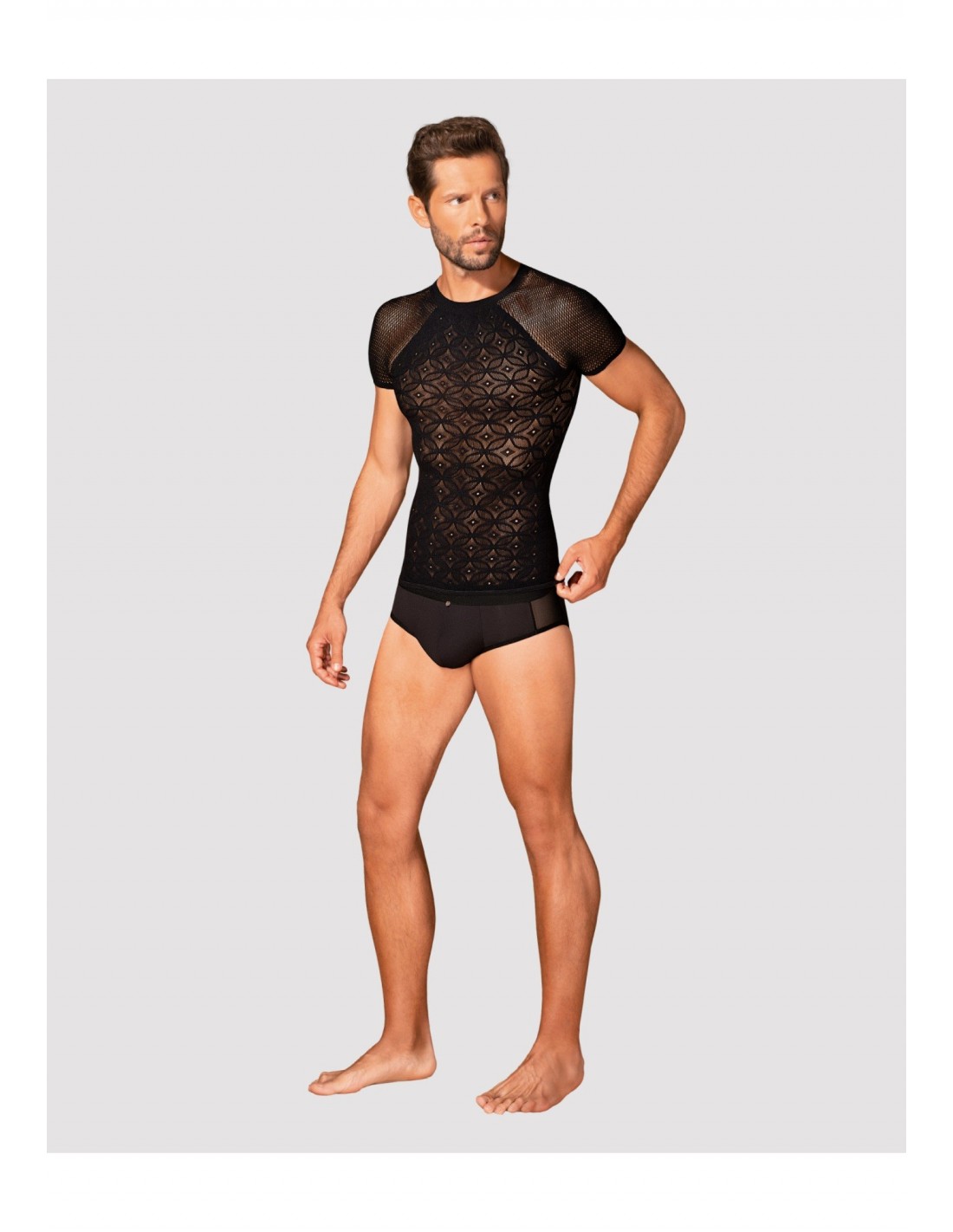 Niech Twój wygląd stanie się esencją męskiej pewności siebie dzięki koszulce T102 Obsessive. Ta czarna koszulka o klasycznym fasonie i głębokim kolorze doskonale podkreśli Twoją sylwetkę, sprawiając, że poczujesz się niezwykle atrakcyjny.