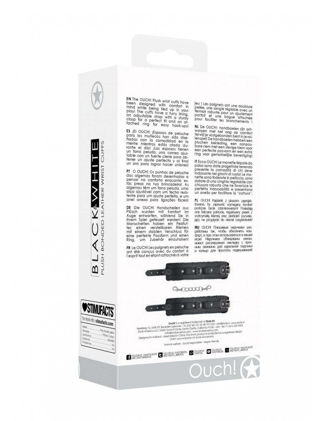 Ouch! Plush Bonded Leather Hand Cuffs są wykonane z wysokiej jakości materiałów, takich jak plusz i skóra. Nie tylko są one przyjemne w dotyku, ale także trwałe i odporne na uszkodzenia. Dodatkowo, są wodoodporne i nie zawierają ftalanów, co sprawia, że są bezpieczne dla Twojego ciała. Skoncentruj się na przyjemności i ciesz się pełnym bezpieczeństwem podczas korzystania z tych kajdanek.