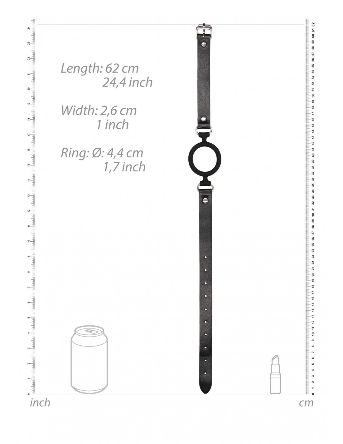 Dodatkowo, skórzany pasek jest w pełni regulowany, dzięki czemu możesz dostosować go do swoich indywidualnych potrzeb. Mocna metalowa klamra zapewnia pewne i mocne ściśnięcie, które pozwoli Ci całkowicie oddać się rozkoszy podległości.