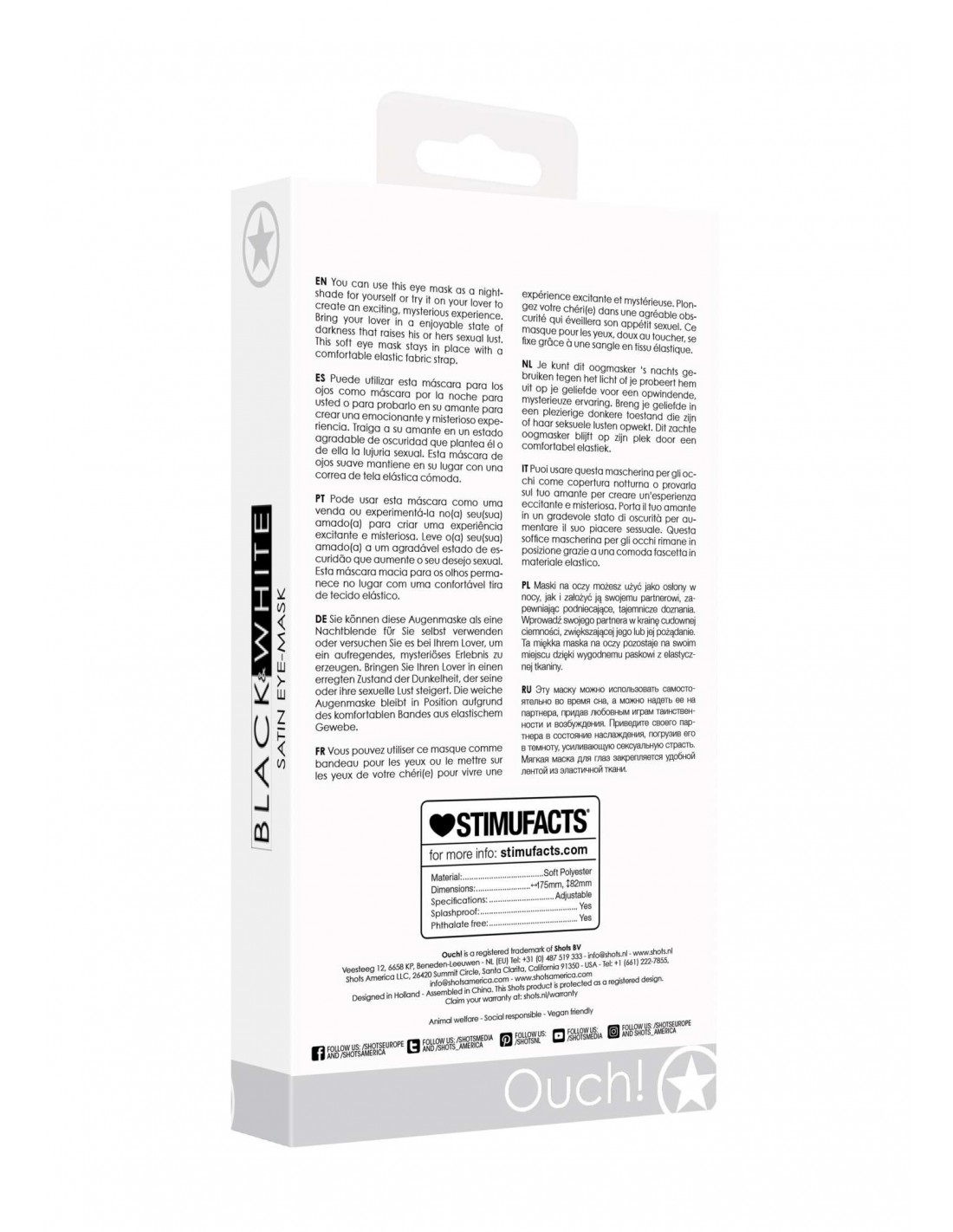 Nasza Maska Satin Eye-Mask została zaprojektowana z myślą o maksymalnym komforcie i trwałości. Wykonana z wysokiej jakości elastycznej tkaniny, maska doskonale przylega do twarzy, niezależnie od jej kształtu. Dzięki wygodnemu paskowi, możesz być pewien, że maska pozostanie na swoim miejscu przez całą noc, zapewniając Ci niezapomniane doznania.