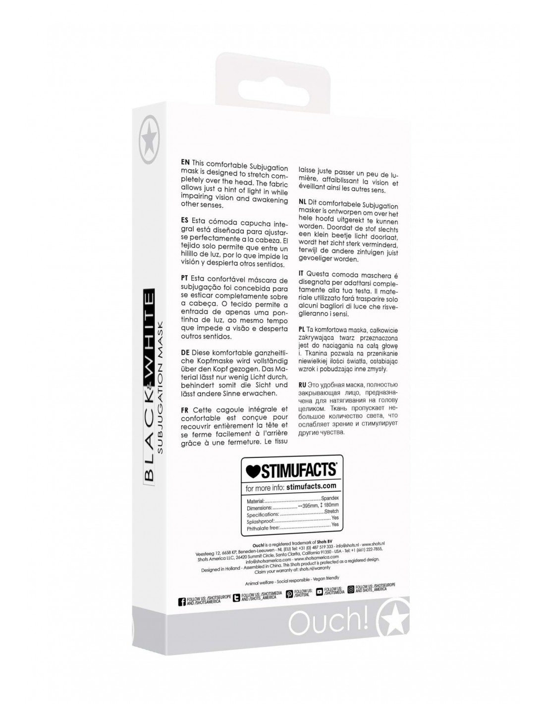 Maska Subjugation Mask - Allows Just A Hint Of Light została stworzona z myślą o Twoim komforcie i wygodzie. Wykonana z wysokiej jakości spandexu, doskonale dopasowuje się do kształtu Twojej głowy, zapewniając pełne zaciemnienie. Dzięki elastycznemu suwakowi z tyłu maski, możesz ją łatwo dopasować do swoich potrzeb. Nie musisz się martwić o dyskomfort, ponieważ cienka, lekka tkanina pozwala na swobodne oddychanie i słyszenie odgłosów klapsów.