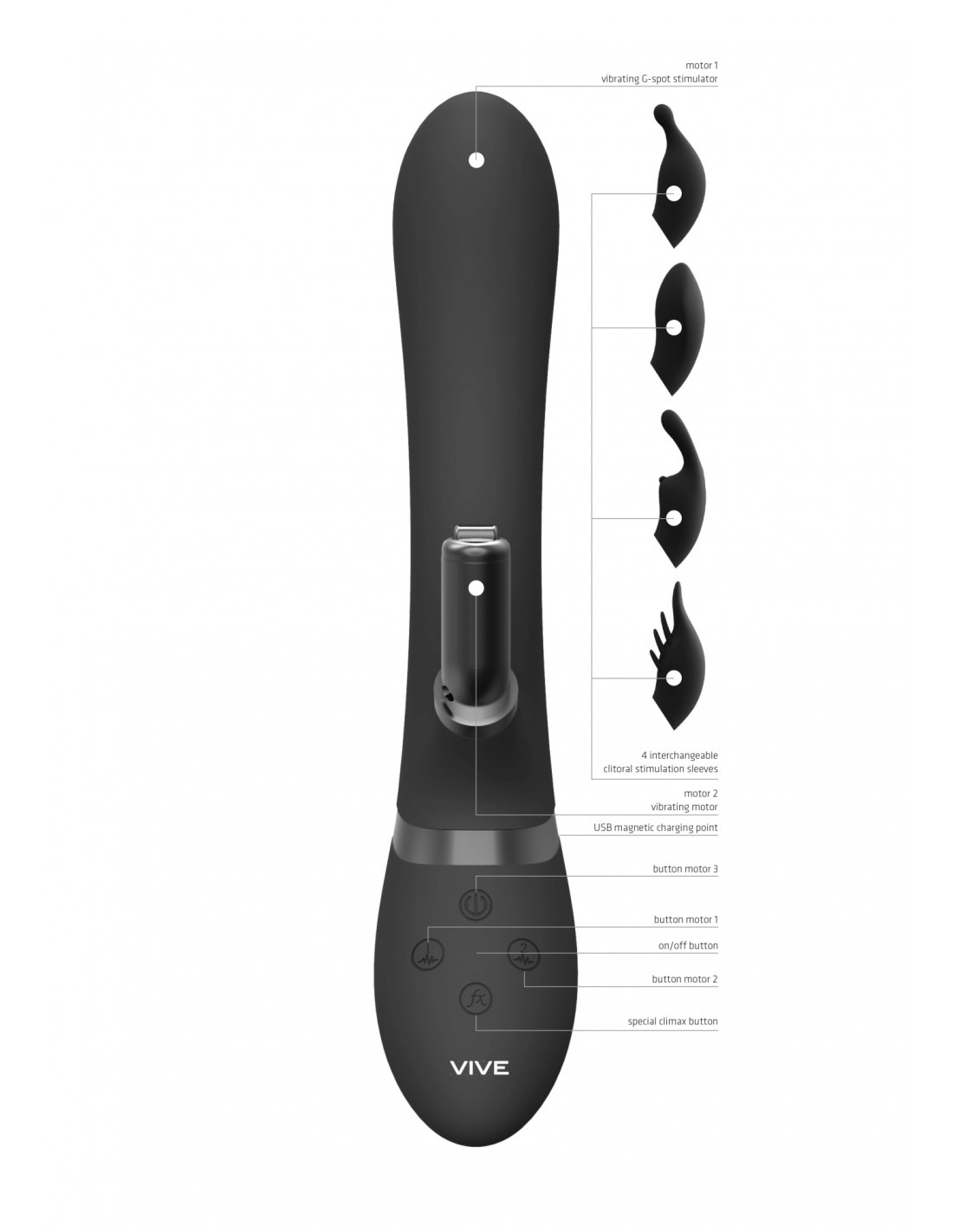 Zestaw wibratora Króliczek Chou zawiera 4 charakterystyczne, wymienne silikonowe nakładki, które zapewniają niezrównaną stymulację łechtaczki. Każda z nich oferuje unikalne doznania, dzięki czemu masz nieograniczone możliwości i możesz eksperymentować z różnymi rodzajami stymulacji.