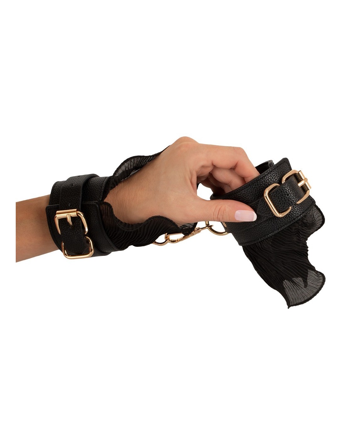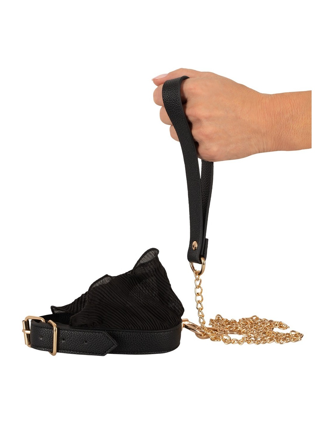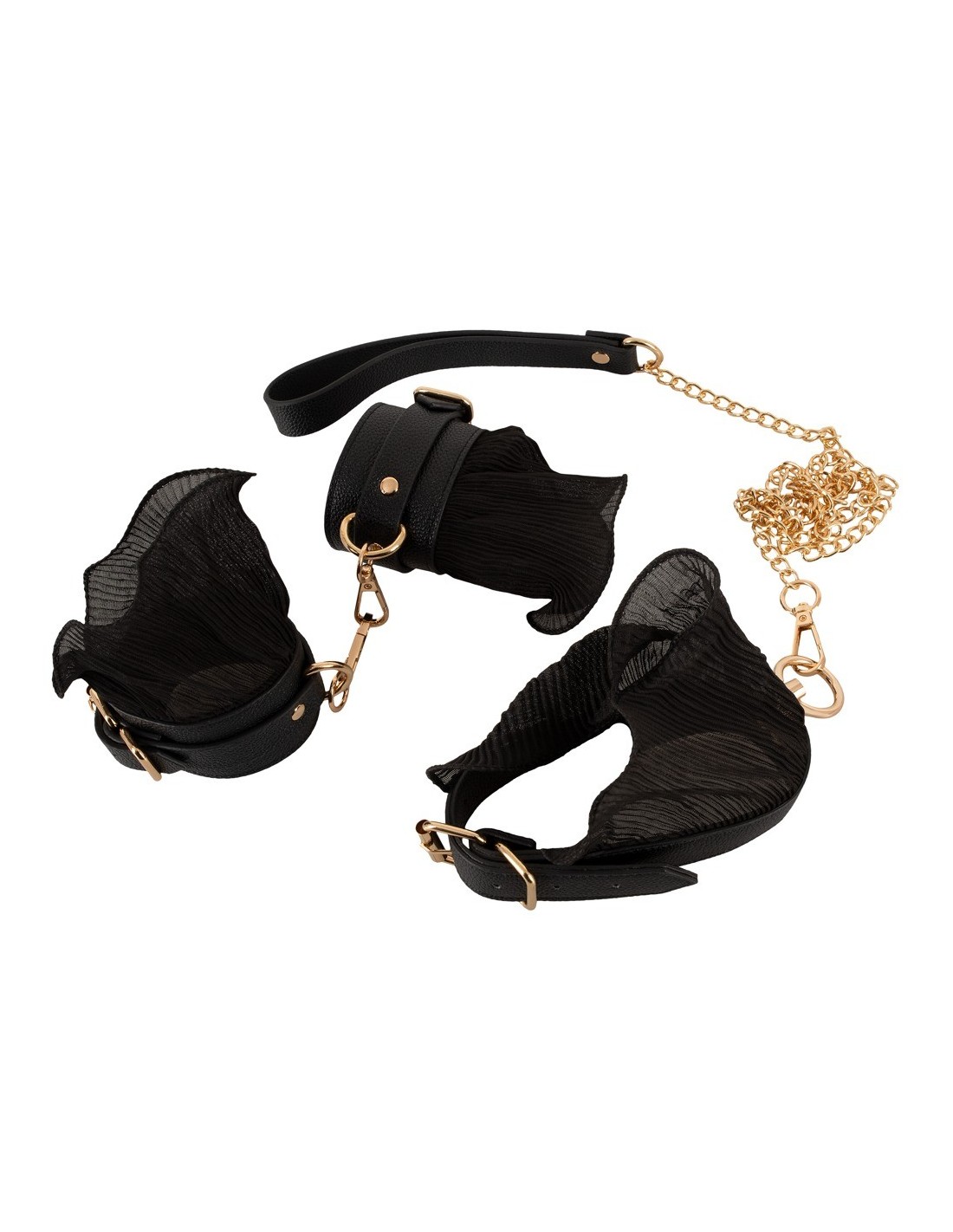 Experience the ultimate blend of roughness and tenderness with the Bad Kitty Bondage Set Frill. This high-quality BDSM set is perfect for those seeking thrilling experiences in the world of bondage. With its realistic leather look, delicate pleated frills, and gold-coloured metal elements, this set is sure to captivate your senses.