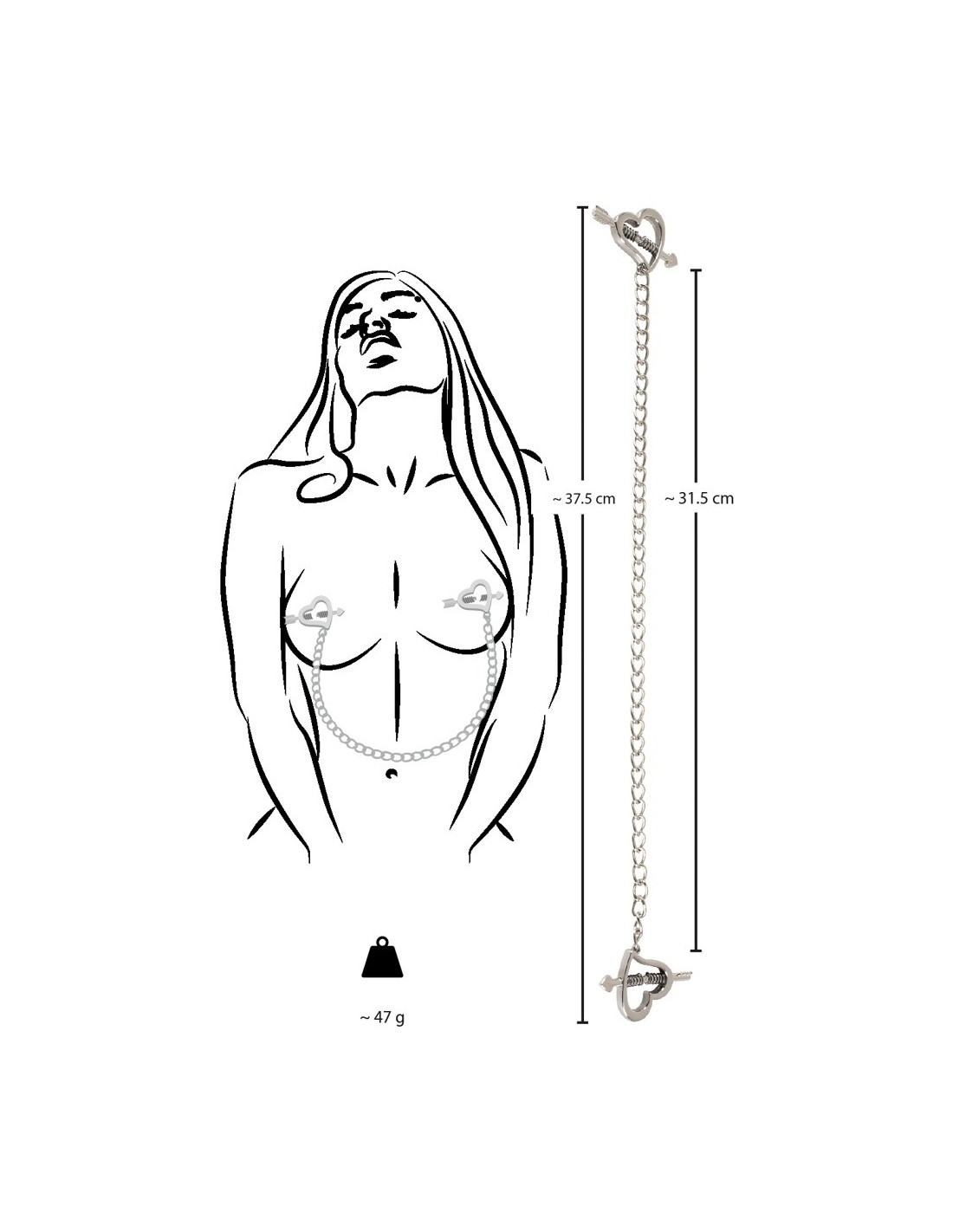 Introducing the Bad Kitty Heart Shaped Nipple Clamps, the perfect combination of pain and pleasure that will leave you craving for more. These exquisite nipple clamps from Bad Kitty not only pinch your nipples sensually but also adorn your chest area with a stunning stainless steel chain. Get ready to embark on a journey of intense sensations and breathtaking visuals.