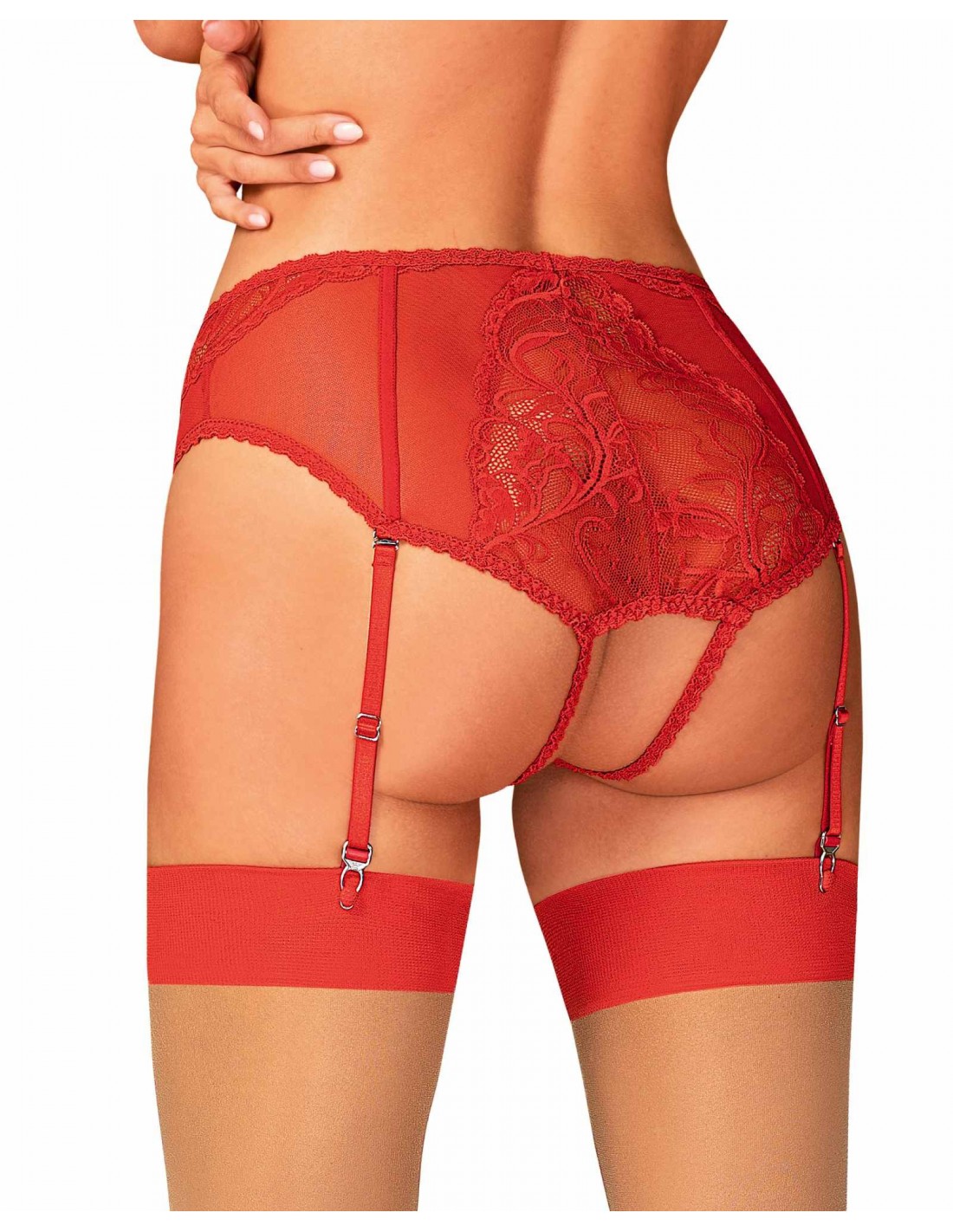 Pragniesz wieczoru pełnego namiętności i niezapomnianych chwil? Pozwól, że zaprezentujemy Ci figi z paskami do pończoch z kolekcji Dagmarie. To niezwykłe połączenie kuszącej koronki, gorącej czerwieni i otwartego kroku sprawi, że każda chwila spędzona w nich będzie pełna pikantnych przyjemności.
