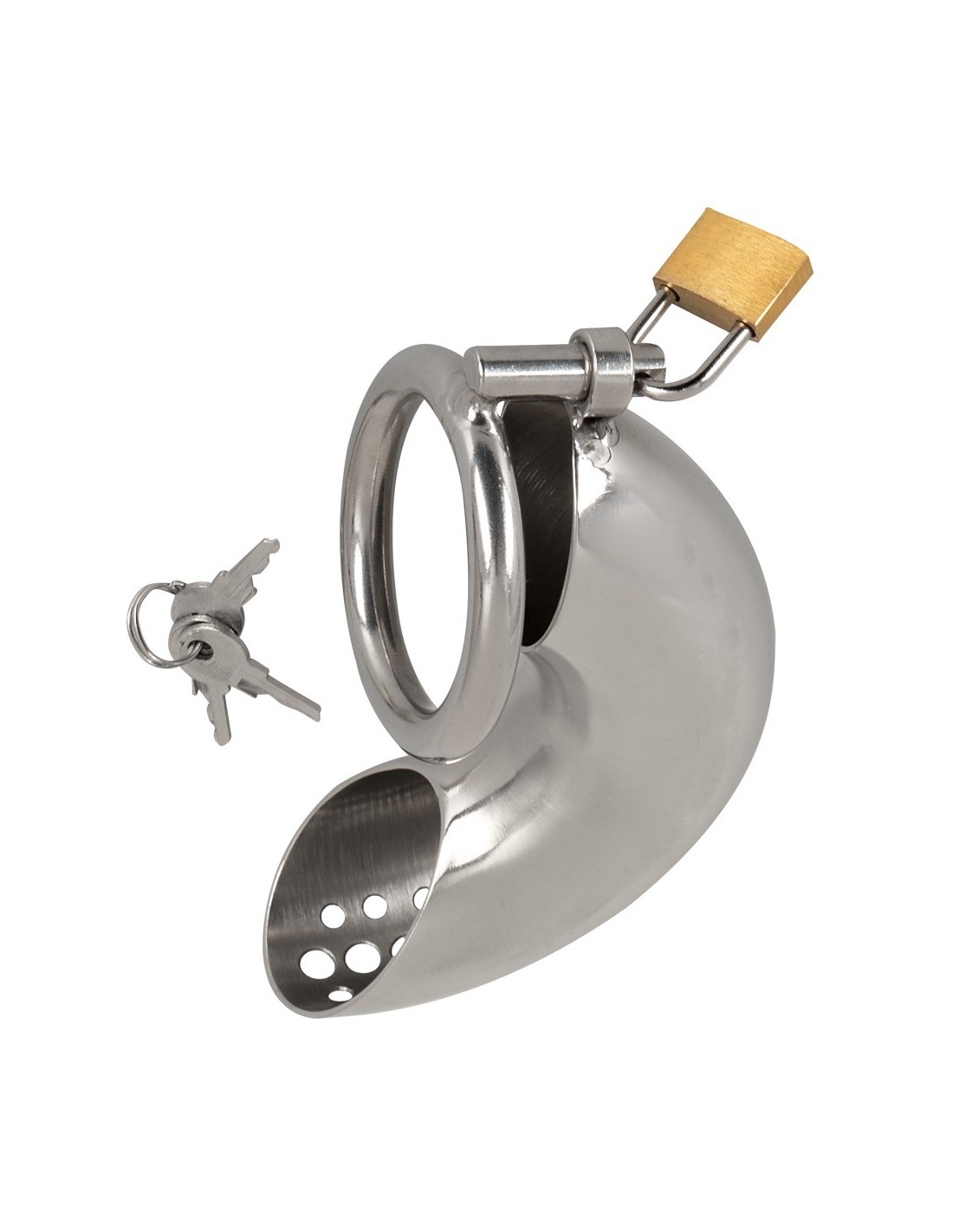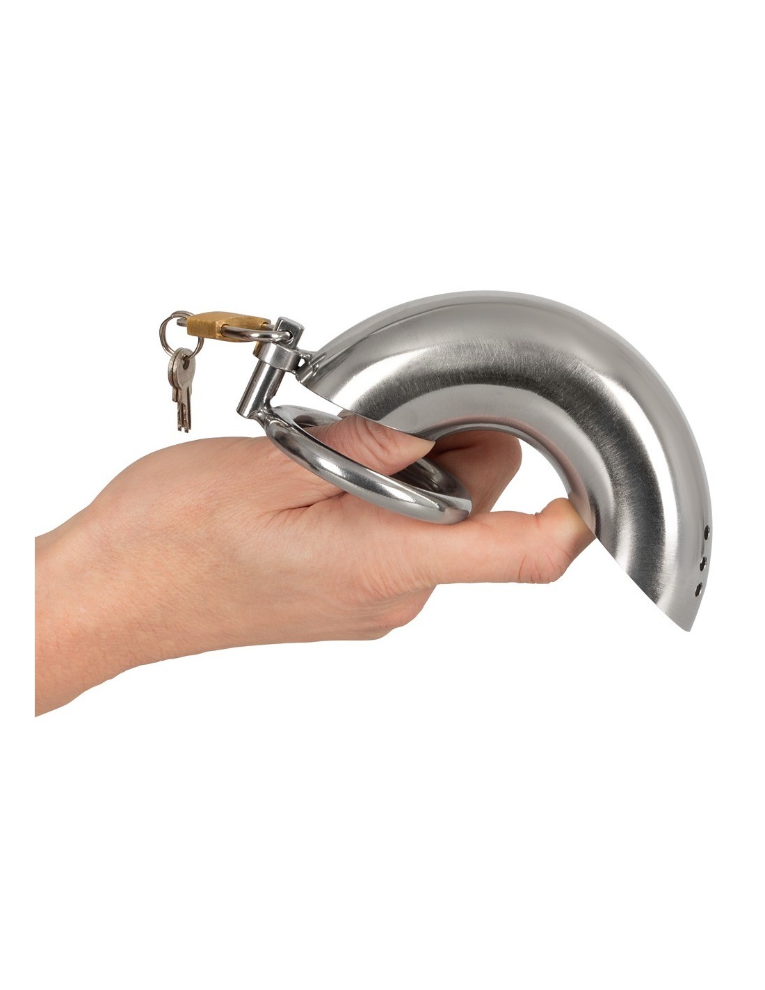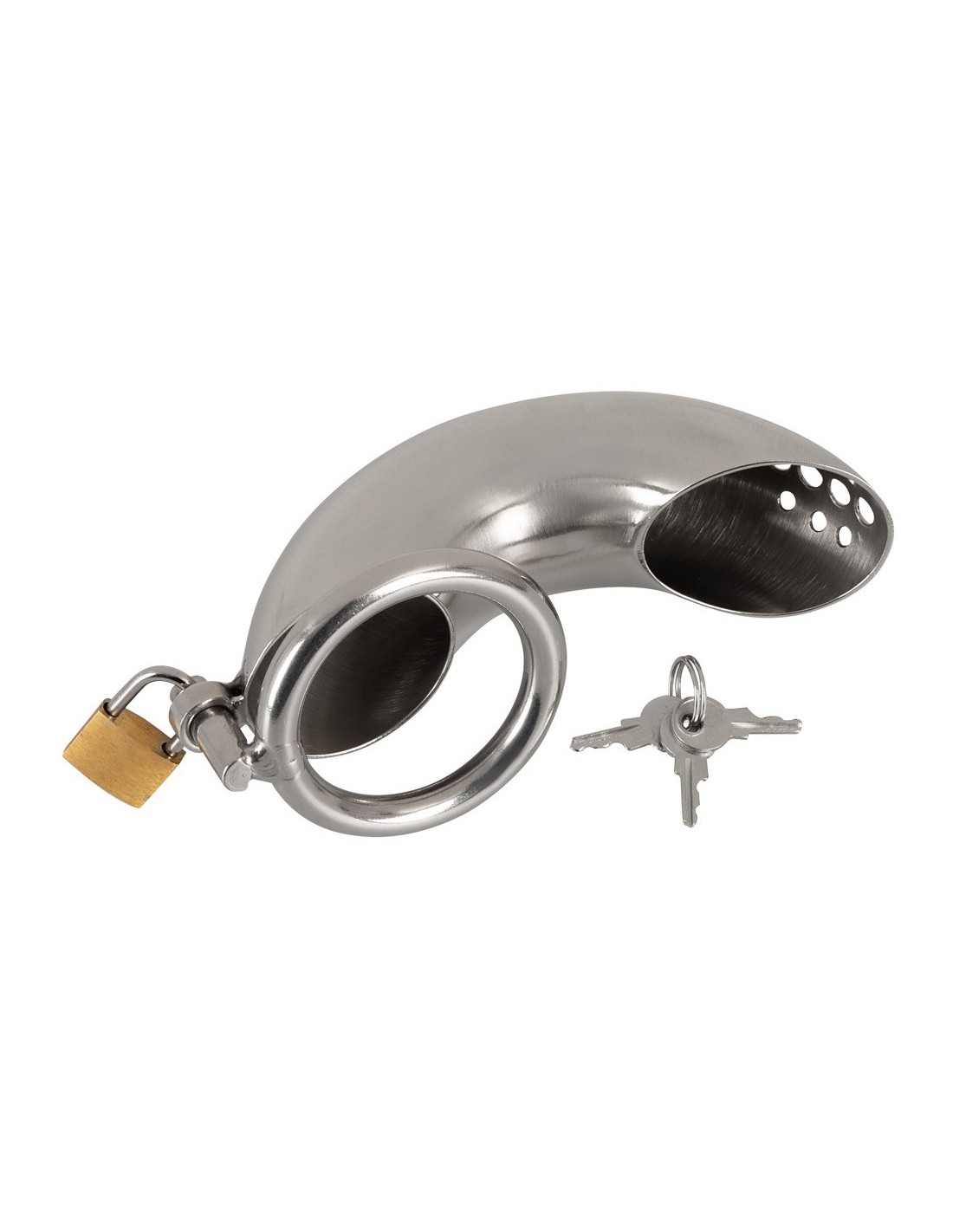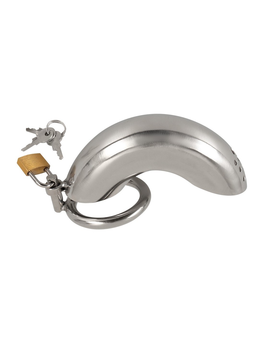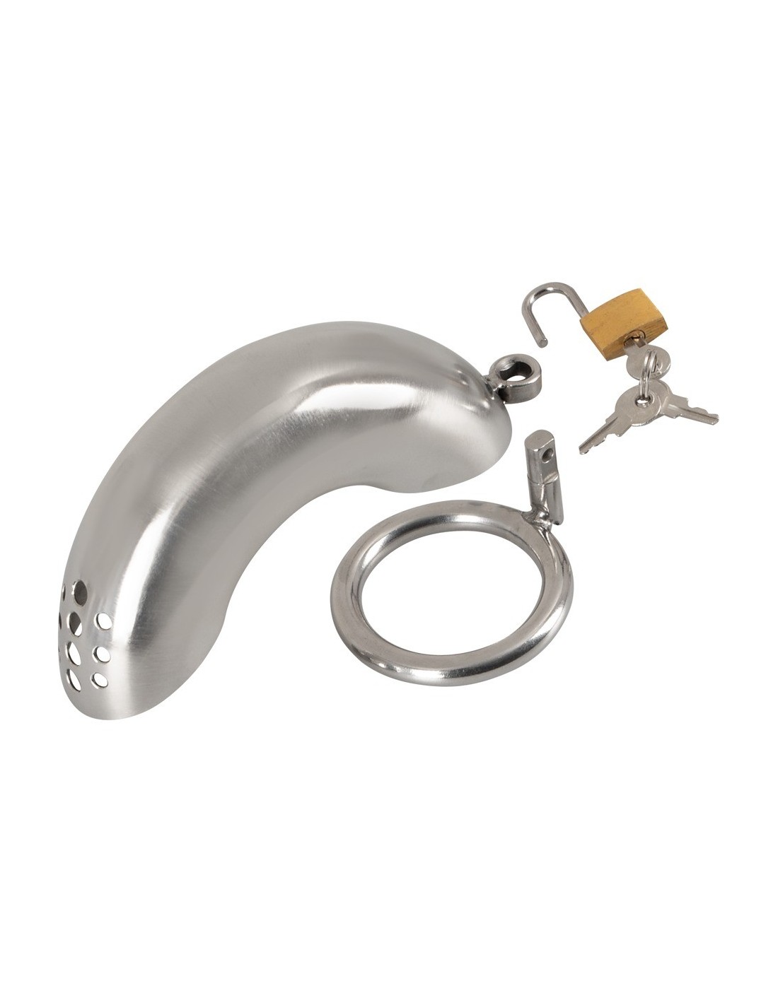 The curved cage of our Penis Cage Curved is perfect for those who crave an elevated level of chastity play. Its easy-to-use design allows for effortless application and removal, with the non-erect penis fitting snugly into the cage and the steel ring securely placed around the testicles. With the included lock and three keys, you hold the power to keep your partner locked up until you decide to release them.