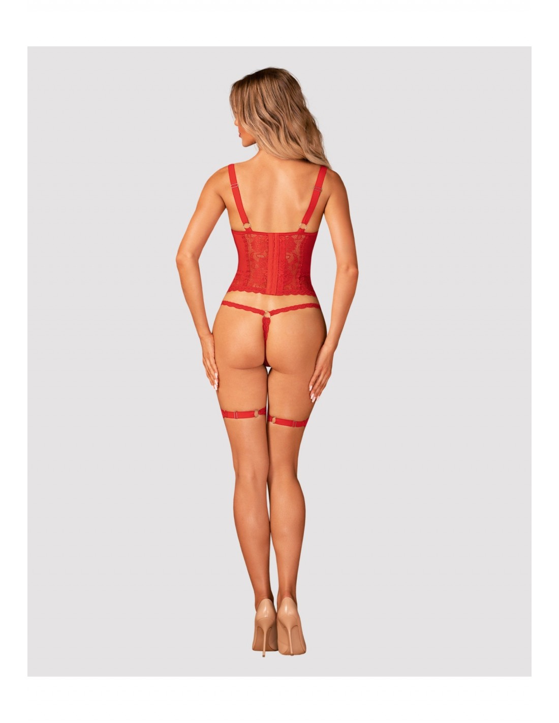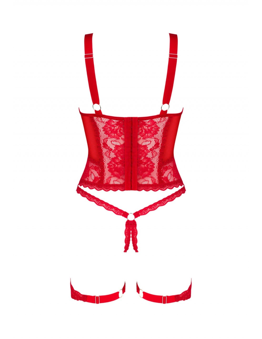 Belovya posiada zapięcie na haftki na plecach, które pozwala na idealne dopasowanie do Twojej figury. Możesz też odpiąć podwiązki z regulowanymi paseczkami, które znajdują się na przodzie i z tyłu, na udach. To dodatkowy kuszący element, który podkreśli Twoje nogi i sprawi, że będziesz wyglądać niezwykle seksownie.