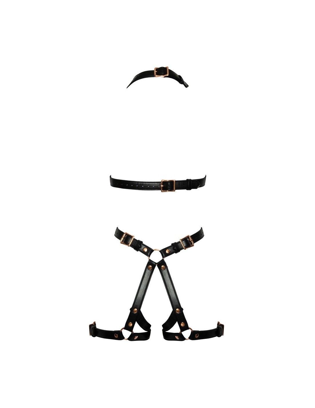 Ten uroczy kostium w stylu skóry z metalowymi elementami w kolorze różowego złota przyciąga uwagę swoim oryginalnym wyglądem. Wykonany z miękkiego, wegańskiego skóropodobnego materiału, zapewnia nie tylko wygodę, ale także trwałość. Możesz dostosować paski do swojego ciała za pomocą sprzączek, aby zapewnić idealne dopasowanie.