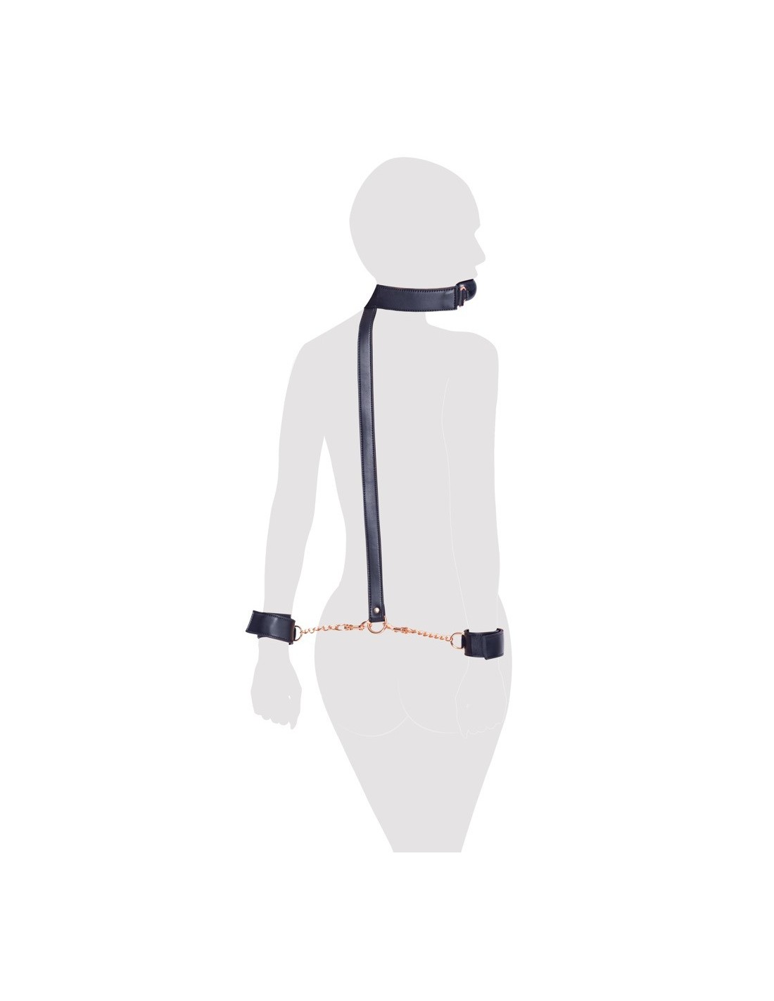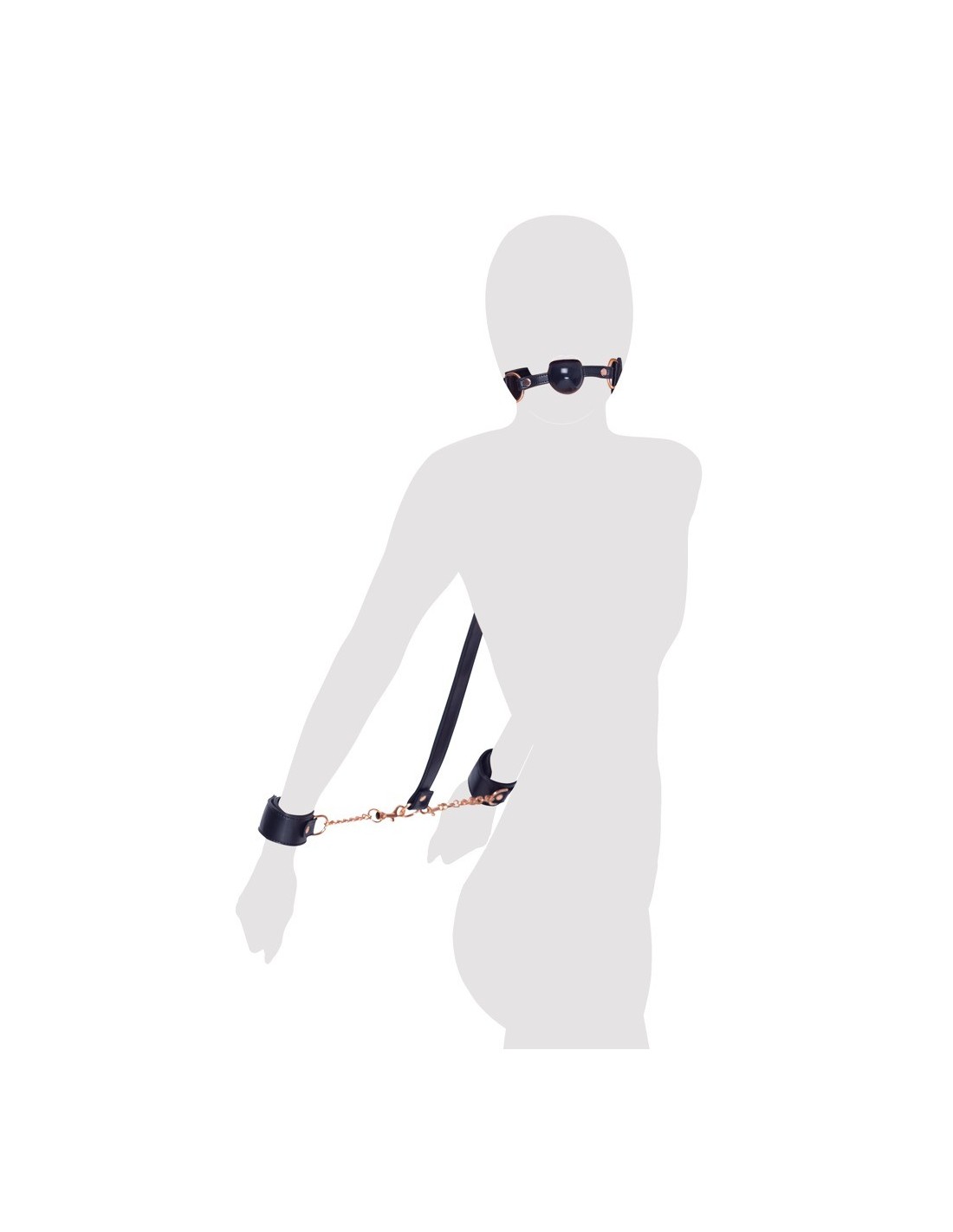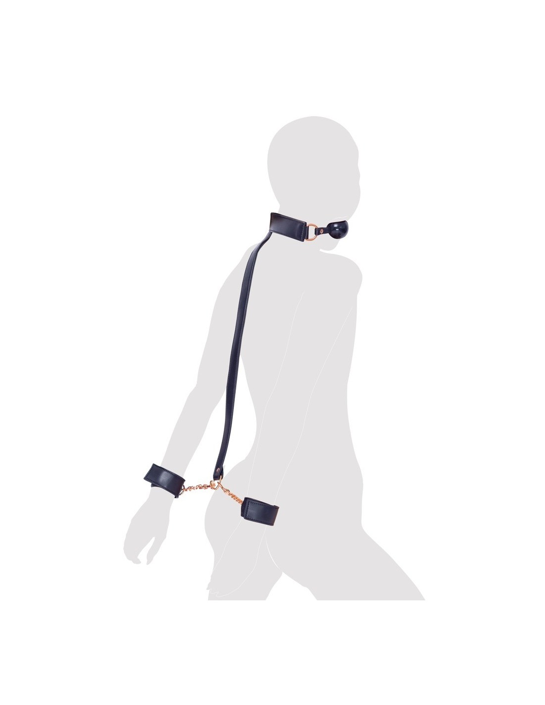 Zestaw kajdanek z kneblem w ustach Bad Kitty Ball Gag+Cuffs rose to idealne rozwiązanie dla miłośników BDSM, którzy szukają niezapomnianych doznań. Ten stylowy zestaw wykonany jest w skórzanej oprawie z metalowymi detalami w kolorze różowego złota, co nadaje mu eleganckiego wyglądu.
