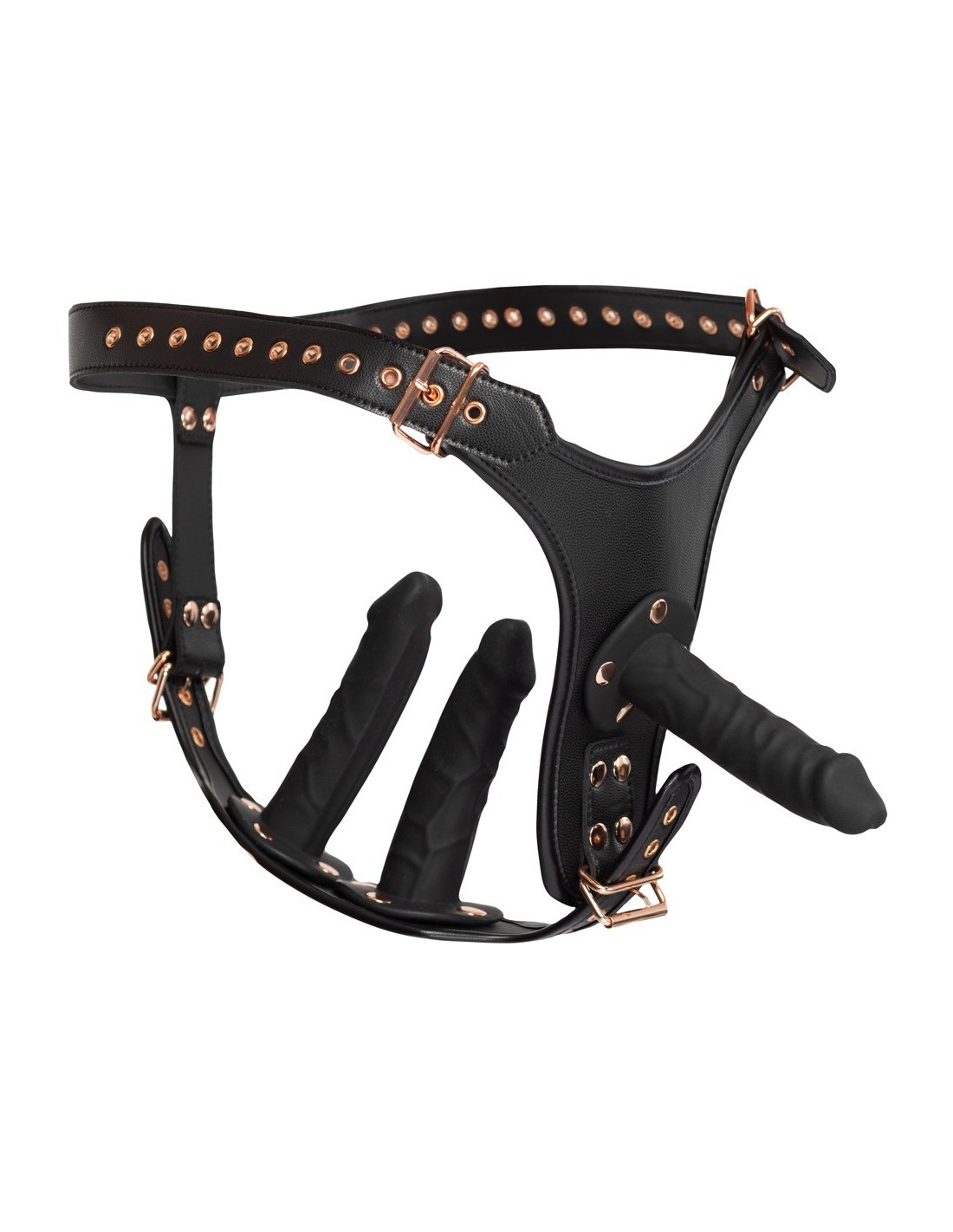 Indulge in the ultimate pleasure with the Bad Kitty Strapon 3D L/Xl. Its stylish leather look with stitched edges and rose-gold colored metal details exudes elegance and sophistication. The adjustable buckle fasteners ensure a perfect and firm fit, allowing you to focus on the pleasure at hand.