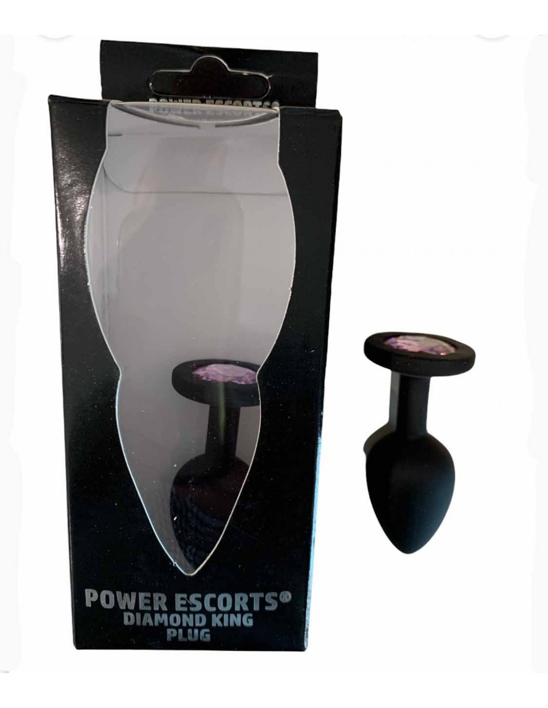 Power EscortsPlug-Diamond King Butt Plug - Silicone Black Medium Pink