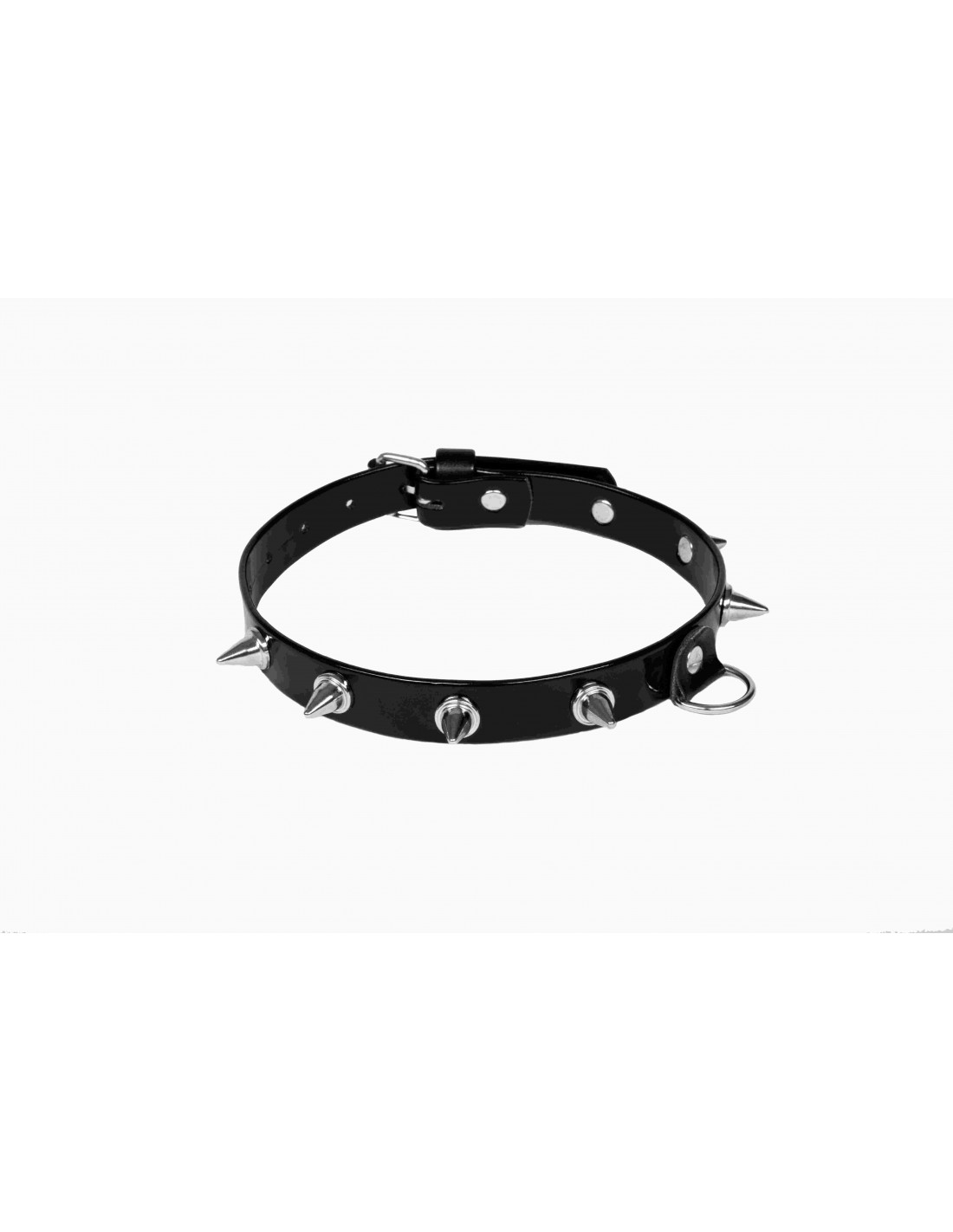 Wiązania-WHIPS lakier, obroża damska z kolcami, czarna