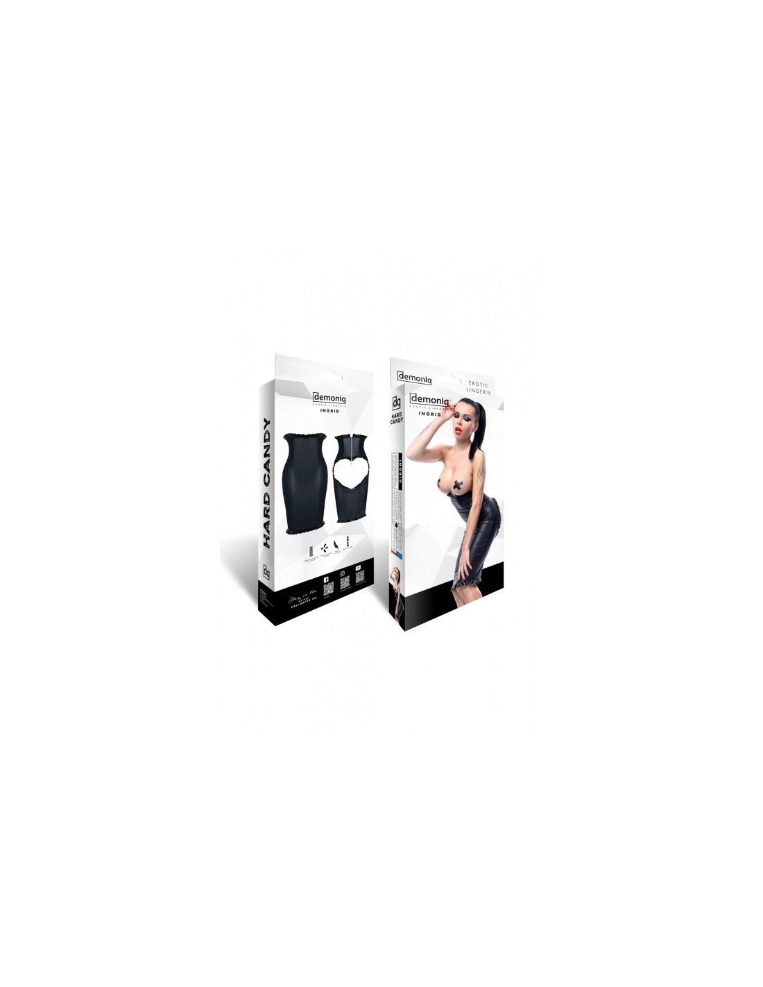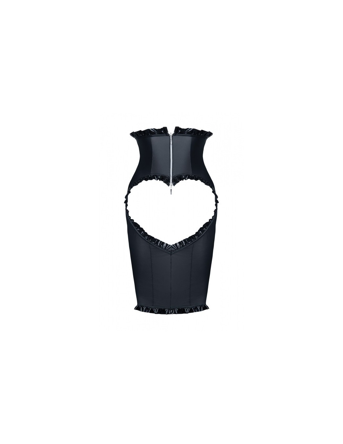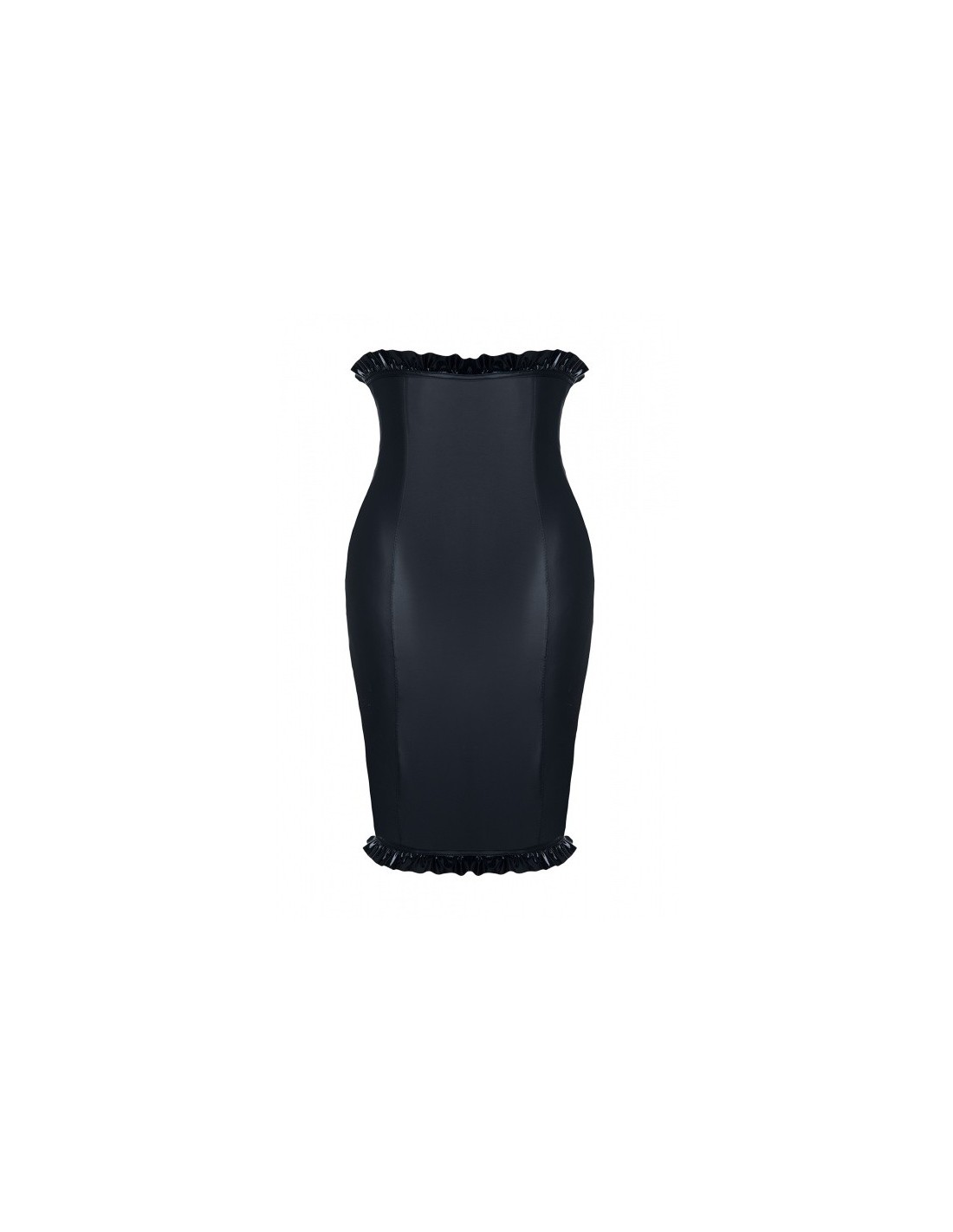 Ingrid kusi, zachwyca i zaprasza do niczym nie skrępowanych zabaw.Spódnica w całości wykonana z elastycznego materiału, dzięki czemu doskonale dopasowuje się do ciała i podkreśla jego linie. Specjalne profilowanie wyszczupla talię. Sięga od linii kolan, aż pod biust. Na całym obwodzie z dołu i góry ozdobiona czarną, lakierowaną tasiemką. Spektakularnie seksownie prezentuje się z tyłu, gdzie specjalnie wycięcie erotycznie ukazuje nagie pośladki. Wycięcie w kształcie serca podkreśla czarna lakierowana tasiemka. Jeszcze więcej pikanterii dodaje srebrny zamek. Jest odpinany z 2-u stron, co pobudza wyobraźnię i zdecydowanie podnosi temperaturę erotycznych zabaw. Cechy charakterystyczne:1. Wzmacniające przeszycia w newralgicznych miejscach2. Metalowe elementy bez chromu i niklu3. Materiał elastyczny i sprężysty4. Materiał miły w dotyku5. Ekspres odpinany z 2-u stron Kolor: czarnyDostępne rozmiary: S,M,L,XL,XXLSkład surowca: PVC: 100% polyester // ekoskóra: 95% polyester, 5% elastan