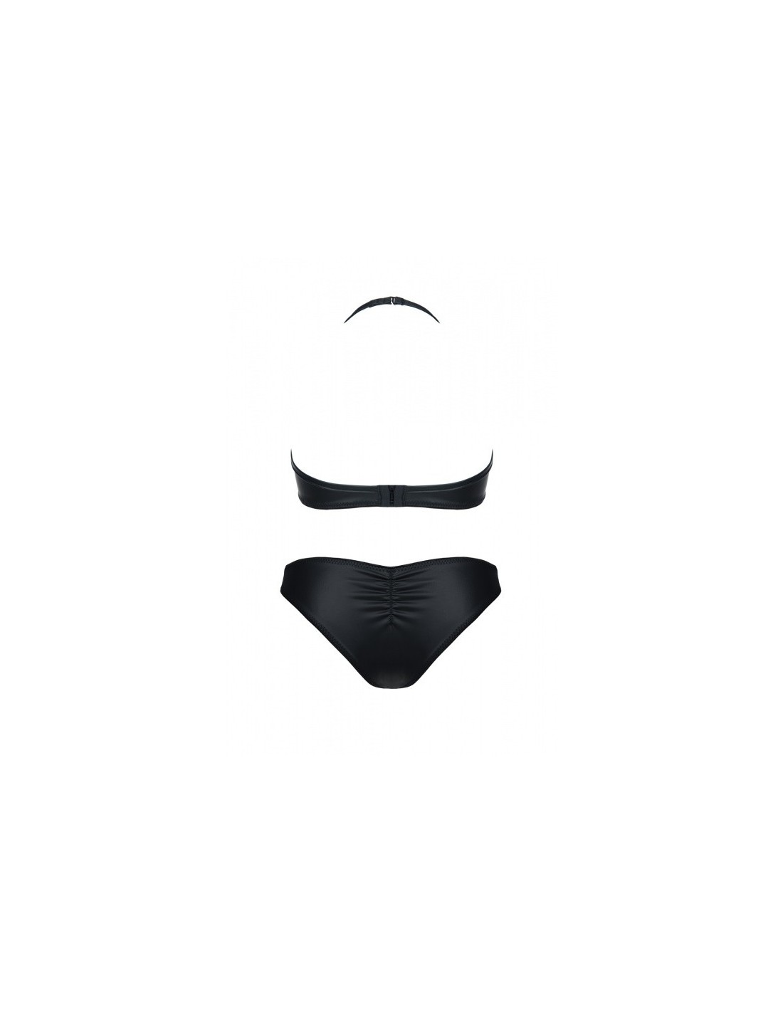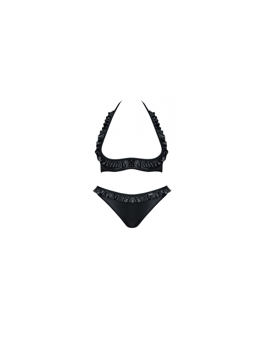 W komplecie:BiustonoszPantyKomplet Mia zaprasza do zabaw gorących i bez żadnych ograniczeń. Efektownie eksponuje walory sylwetki i nieograniczone możliwości ich prezentacji.Zmysłowy stanik podkreśla kształt piersi, przykuwa uwagę ich śmiałym wyeksponowaniem i nagością. Specjalna konstrukcja pozwala na wygodne ich wyeksponowanie, a efektowna, czarna, lakierowana tasiemka znajdująca się na obwodzie, pięknie podkreśla ich kształt. Wygodny i łatwy do dopasowania dzięki kilkustopniowym zapięciom na plecach i szyi.Panty będące w komplecie wykonane z elastycznej ekoskóry doskonale dopasowują się do ciała, z tyłu efektownie podkreślają kształt pośladków. Wykorzystana z przodu lakierowana tasiemka nawiązuje wizualnie do biustonosza.Cechy charakterystyczne:1. Wzmacniające przeszycia w newralgicznych miejscach2. Materiał elastyczny i sprężysty3. Materiał miły w dotyku4. Biustonosz o usztywnionej konstrukcji5. Biustonosz z kilkustopniowym zapięciem Kolor: czarnyDostępne rozmiary: S,M,L,XL,XXLSkład surowca: PVC: 100% poliester // ekoskóra: 95% poliester, 5% elastan