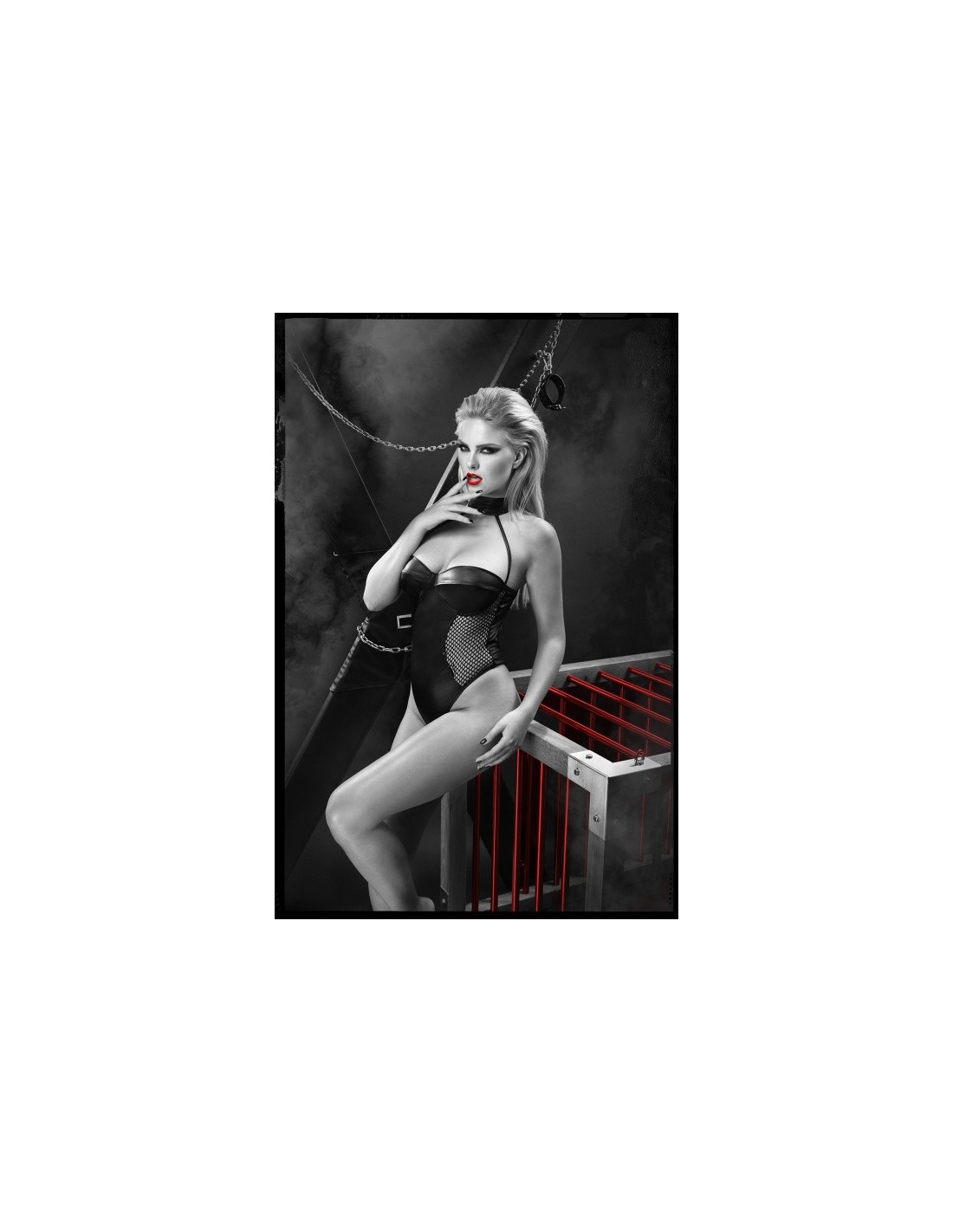 Body pięknie podkreśla kształt piersi dzięki specjalnie wymodelowanej i wzmocnionej fiszbinami konstrukcji. Optycznie wyszczupla sylwetkę. Z tyły wyróżnia się zaskakującym, owalnym kształtem ukazującym cześć pleców. W górnej części znajduje się srebrny zamek z ozdobnym suwakiem. Zmysłowo podkreśla kształt pośladków. Cechy szczególne:Wytrzymały zamek odporny na zrywanie i uszkodzeniaOzdobny suwak przy zamkuWygodne i wytrzymałe fiszbiny wzmacniające konstrukcję przy biuścieWzmacniające przeszycia w miejscach wrażliwych na rozerwanie Kolor bielizny: czarnyDostępne rozmiary bielizny: S,M,L,XL,XXLSkład bielizna: Siateczka: 100% polyester // ekoskóra: 95% polyester, 5% elastan