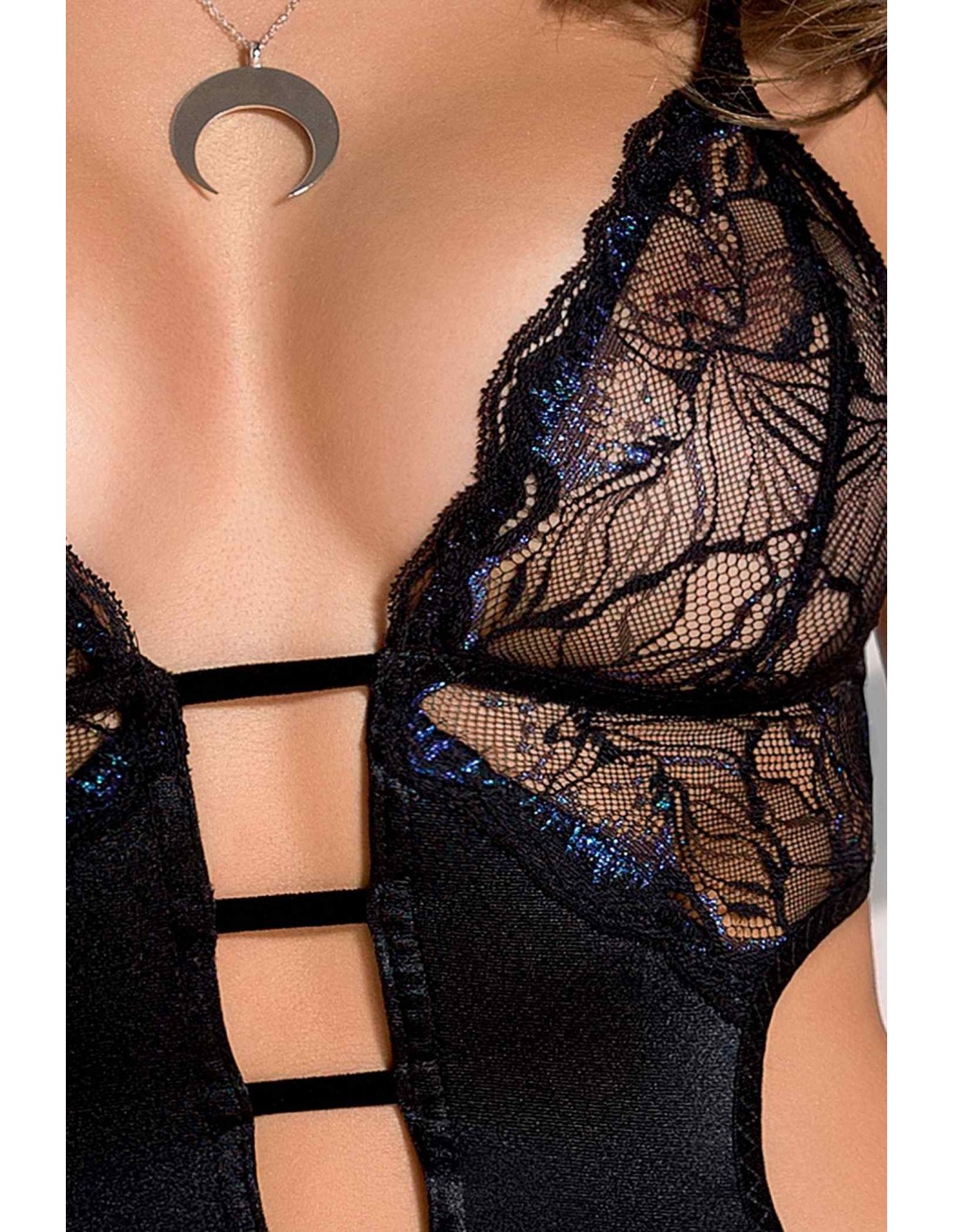 Zaprezentuj swoje kobiece wdzięki w tej odważnej i eleganckiej koszuli nocnej Meredith Chemise. Wykonana z wysokiej jakości czarnej satyny i delikatnej koronki, ta koszula podkreśla Twoje krągłości i dodaje Ci pewności siebie.