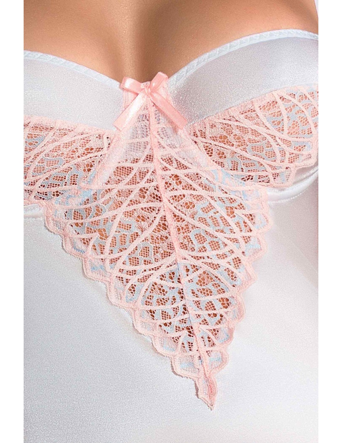 Wykonana z białej satyny, koszula nikogo nie pozostawi obojętnym. Jej delikatny charakter podkreśla subtelną koronkę w kolorze pastelowego różu, która dodaje jej wyjątkowości i elegancji. Regulowane ramiączka pozwalają na idealne dopasowanie do Twojej figury, a specjalna guma ramiączkowa zapewnia jeszcze większy komfort noszenia, jak przy stanikach.