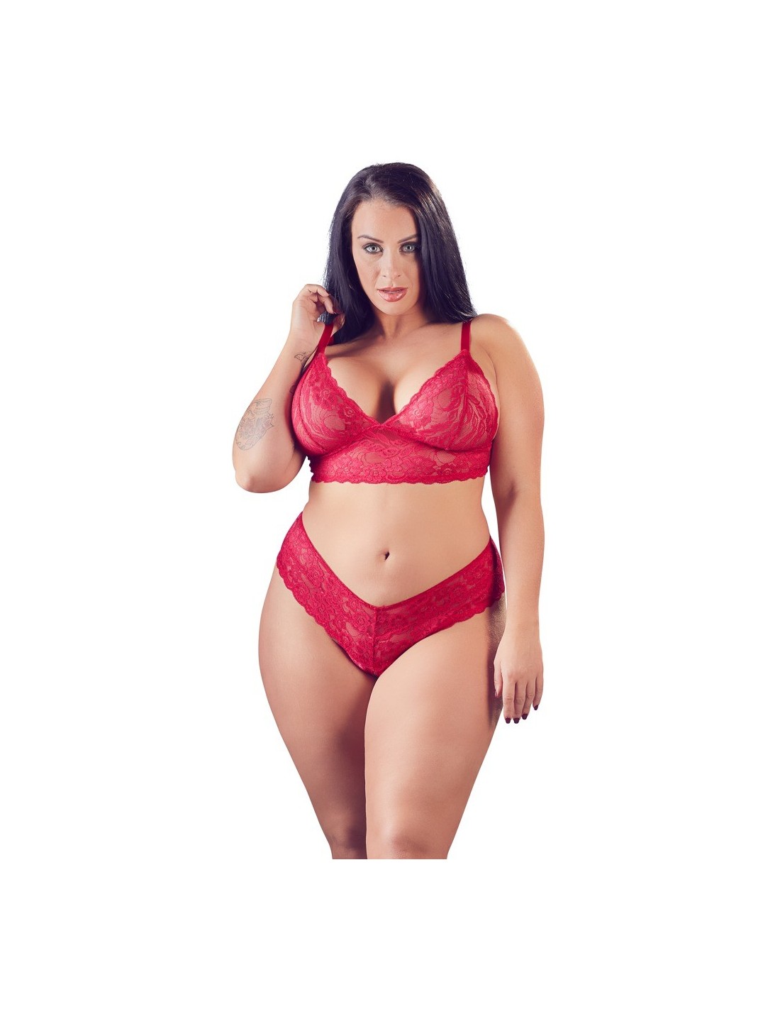 Zapraszamy do świata namiętności i uwodzenia, gdzie delikatna czerwona koronka staje się Twoim największym atutem. Ten komplet bielizny erotycznej marki Cottelli CURVES to doskonały wybór dla kobiet, które pragną podkreślić swoją seksapilną stronę.