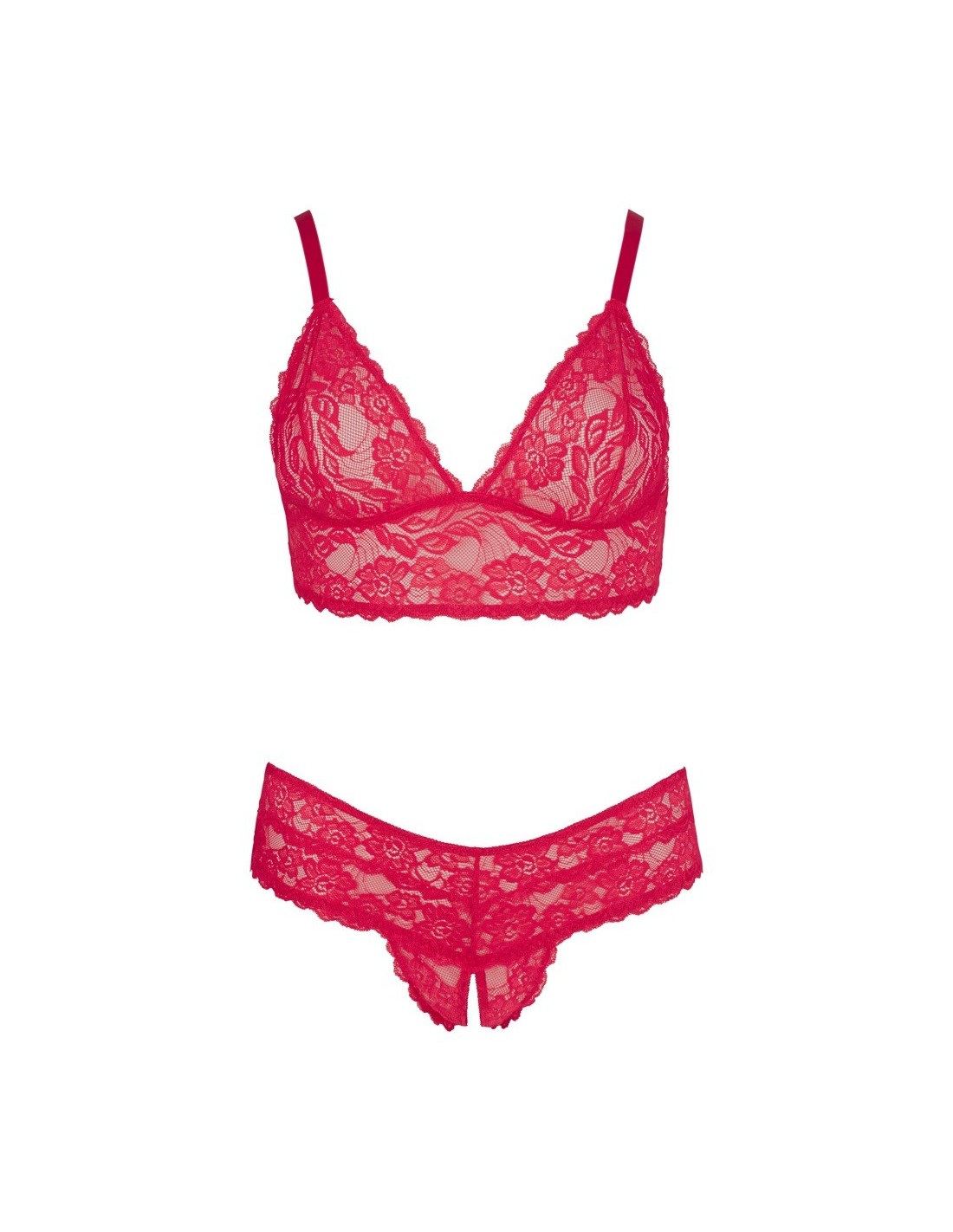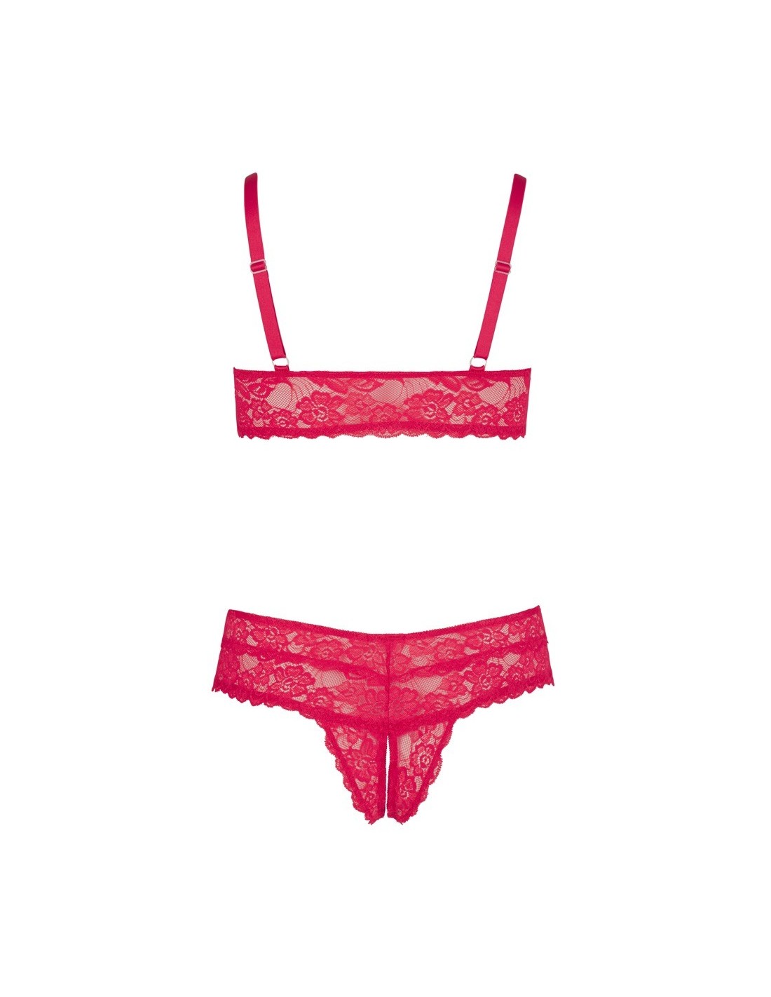 Ten komplet składa się z bezprzewodowego biustonosza, który nie tylko zapewnia wygodę, ale także podkreśla piękno Twojego dekoltu. Regulowane ramiączka pozwalają na idealne dopasowanie do Twojej sylwetki. Dodatkowo, figi z otwartym krokiem dodają całości jeszcze większej pikanterii, tworząc atmosferę pełną namiętności.