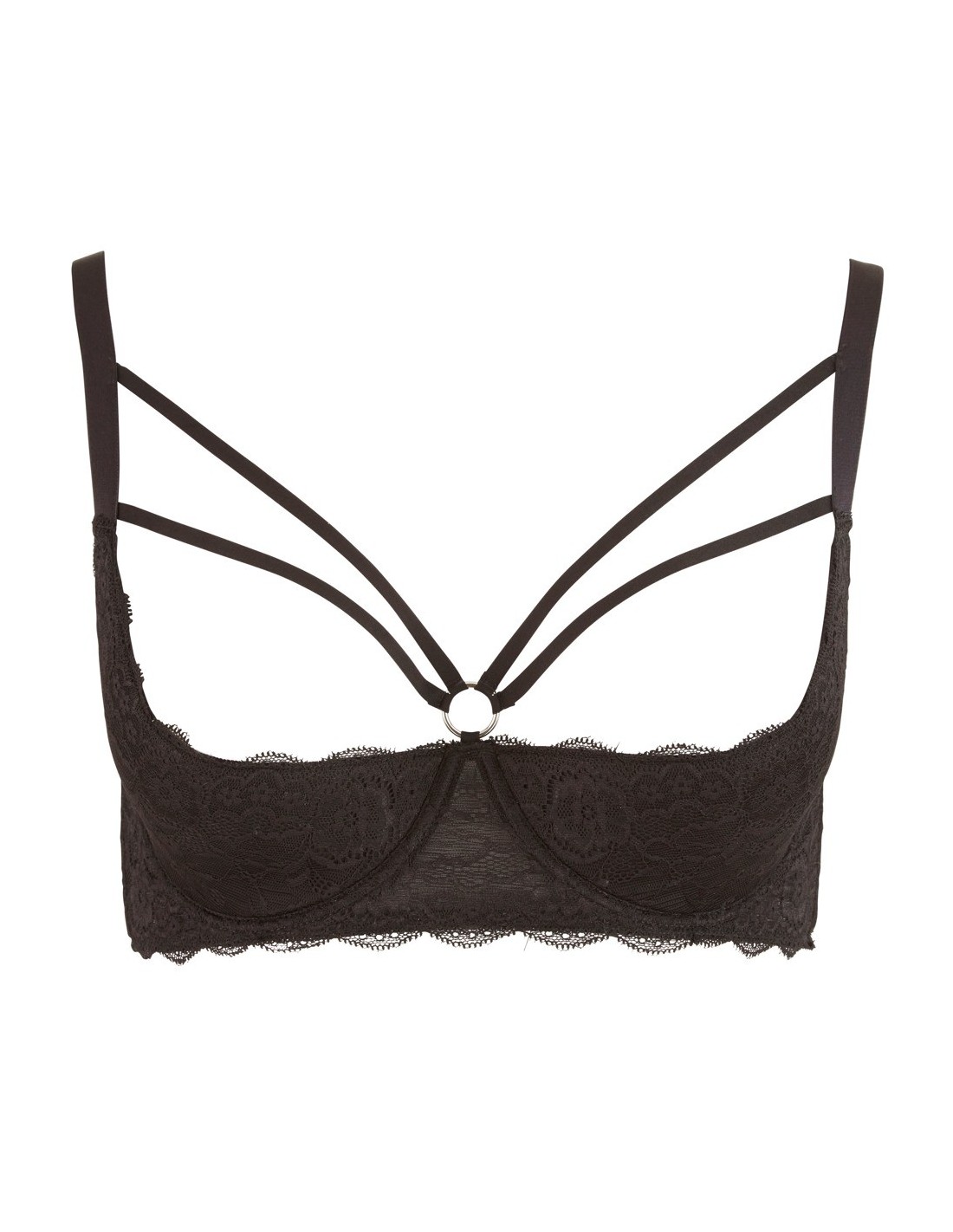 Pozwól swoim piersiom zabłysnąć w pełnym świetle dzięki temu uwodzicielskiemu biustonoszowi z podkreślaczem. Wykonany z czarnej koronki, posiada dekoracyjny pierścień między lekko usztywnionymi miseczkami. Na plecach znajduje się zapięcie na haftki. Zdobądź ten podkreślacz biustonoszowy już teraz i zaprezentuj swoje piersi w niezwykle erotyczny sposób. Elastyczne paski zapewniają idealne dopasowanie. Wykonany z 90% poliamidu i 10% elastanu.