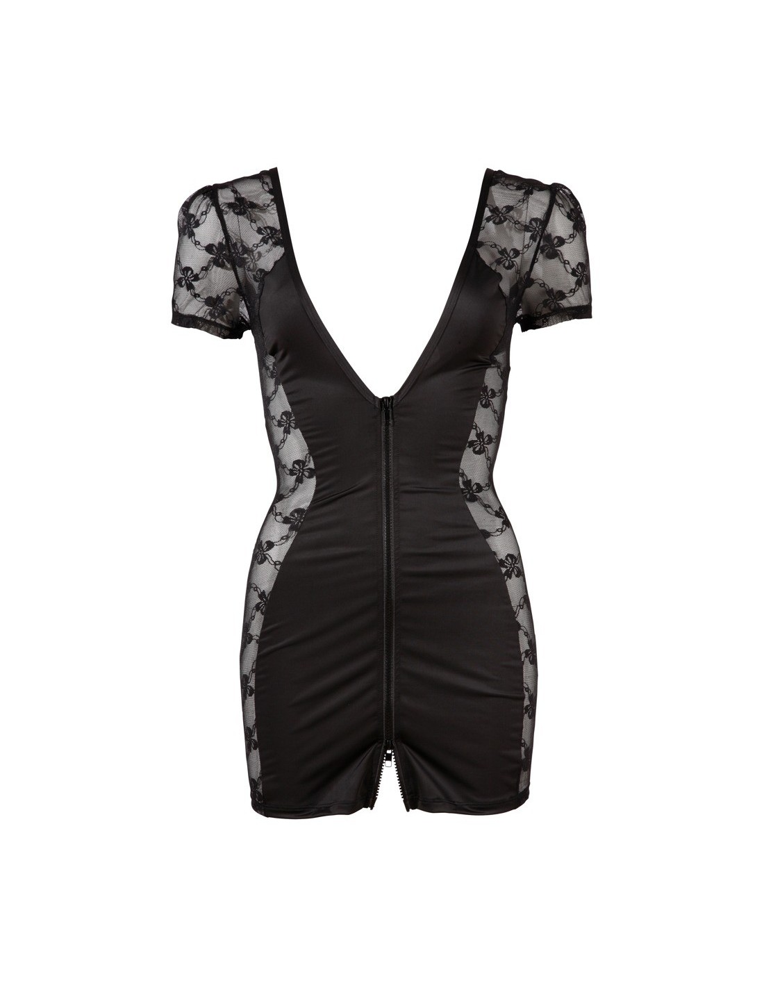 Przygotuj się na niezapomnianą noc w tej wyjątkowej sukience z zamkiem - Dress with Zip S. Ta przeźroczysta, obcisła sukienka z delikatną koronką po bokach jest doskonałym wyborem dla kobiet, które chcą poczuć się seksownie i pewnie.