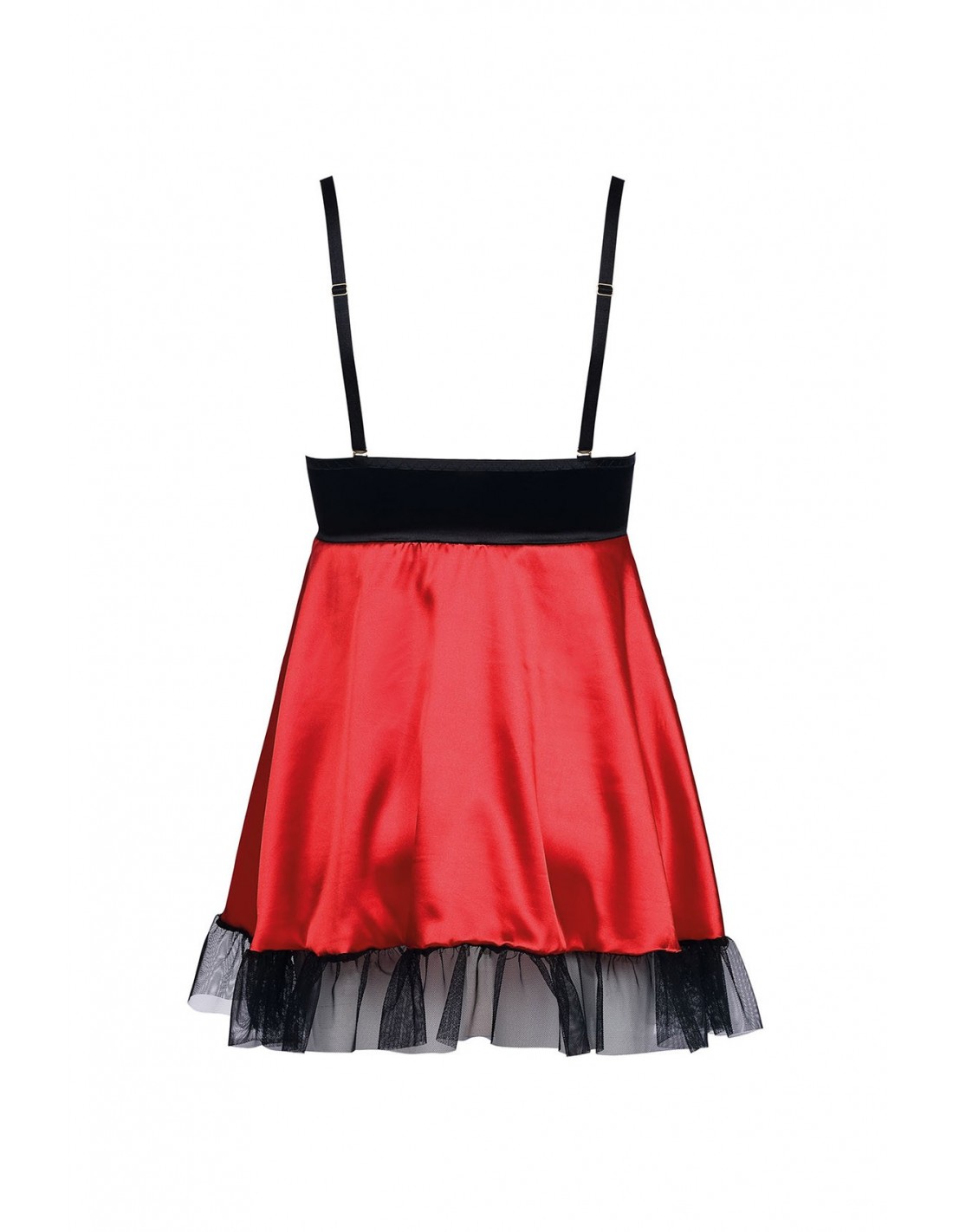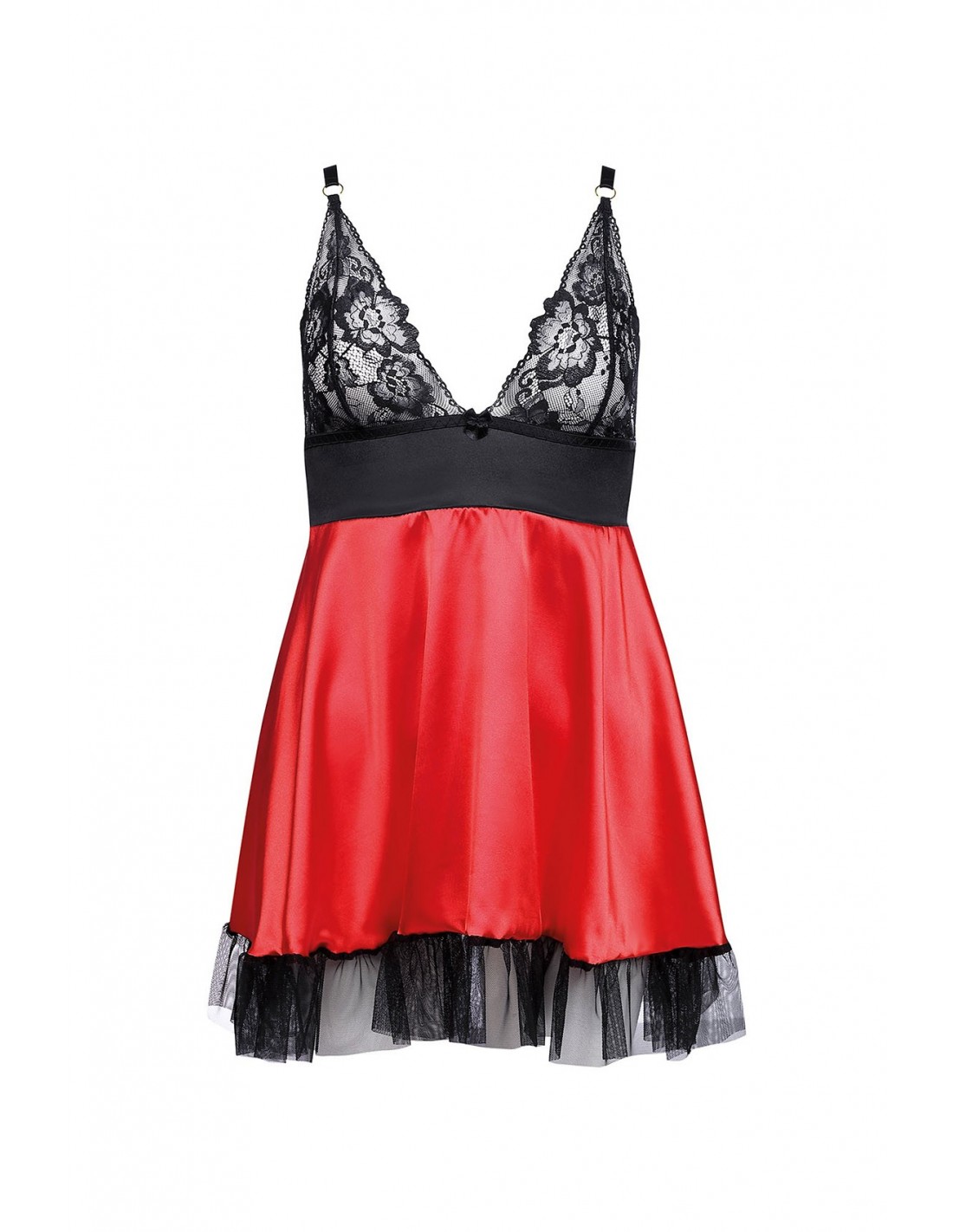 Dzięki miękkim, bez fiszbin miseczkom, Lisbeth S/M zapewnia doskonałe wyprofilowanie i niezrównany komfort noszenia. W połączeniu z satynowym dół w intensywnym czerwonym kolorze, który jest subtelnie obszyty czarnym tiulem, ta koszulka nocna prezentuje się niezwykle stylowo i seksownie.