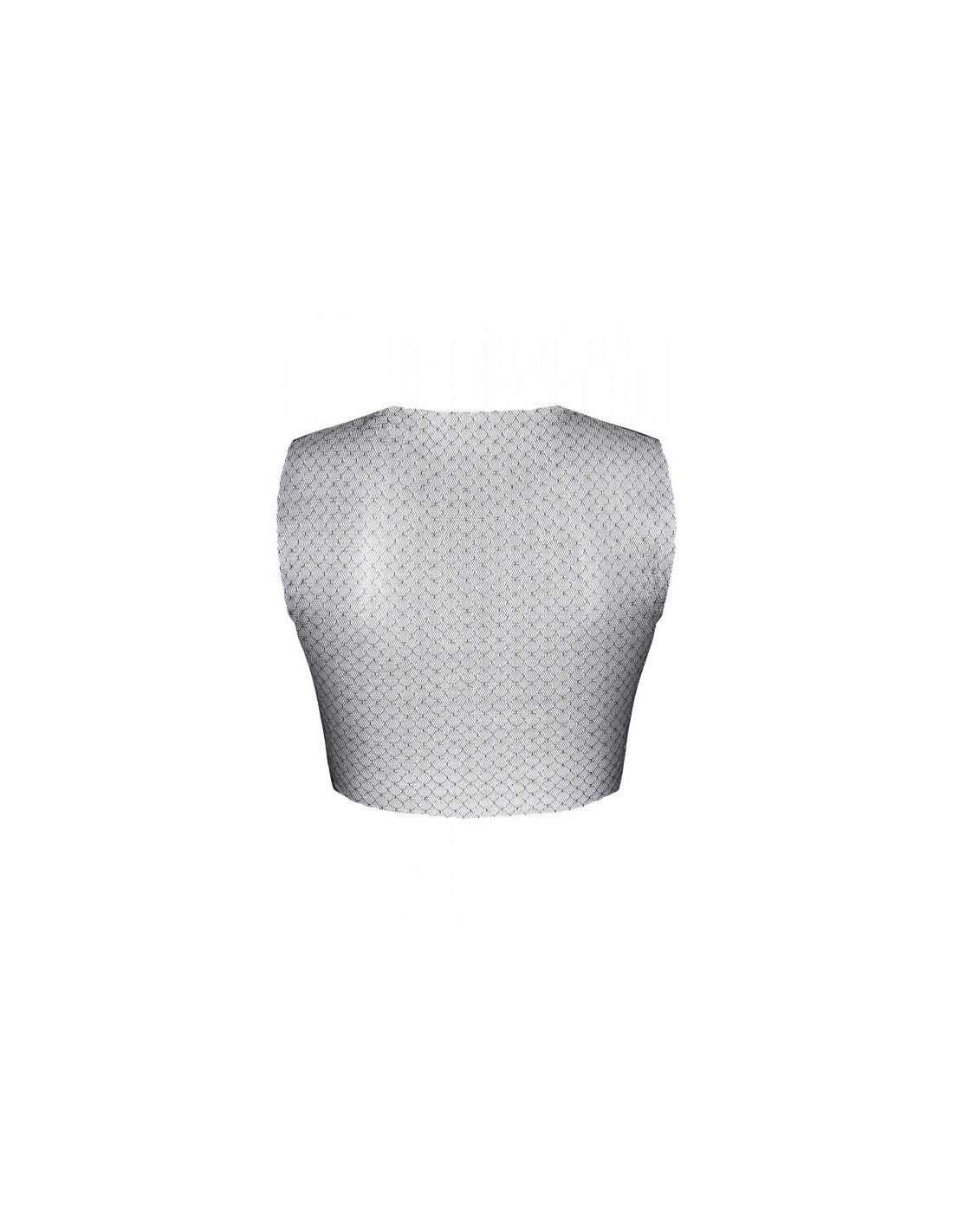 Nasz top XXL - Silver Touch został wykonany z czarnej, transparentnej siateczki, która subtelnie odsłania dolne części ciała, dodając całości odrobinę tajemniczości. Ozdobiony splotem ze srebrnej, metalowej nitki, ten top emanuje elegancją i zmysłowością, przyciągając spojrzenia i podkreślając Twoją wyjątkowość.