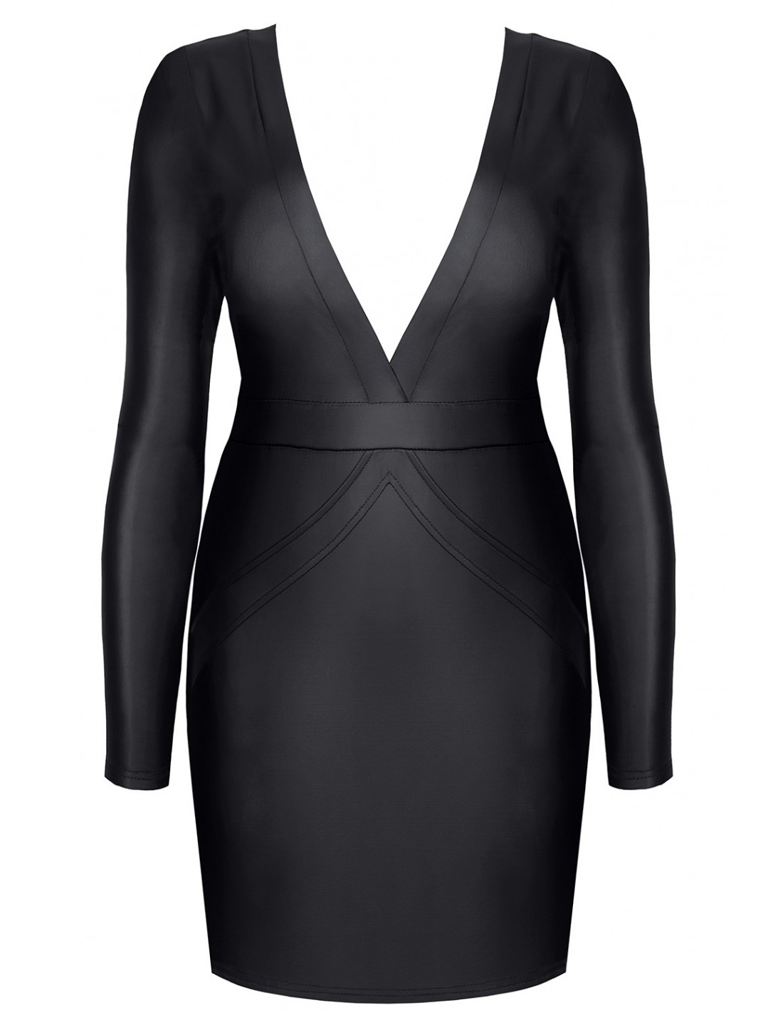 Ta sukienka to połączenie klasyki i nowoczesności. Jej krój podkreśla atuty Twojej sylwetki, a długie rękawy dodają elegancji. Głębokie wycięcie na dekolcie dodaje seksapilu i sprawia, że będziesz czuć się uwodzicielsko. To idealny wybór na wieczorne wyjścia, romantyczne randki lub wieczory pełne przyjemności.