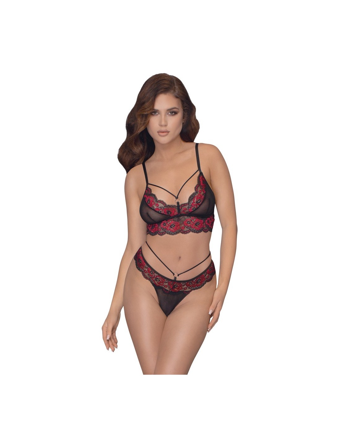Podkreśl swoją kobiecość w komplecie bielizny erotycznej Bra Set black/red S