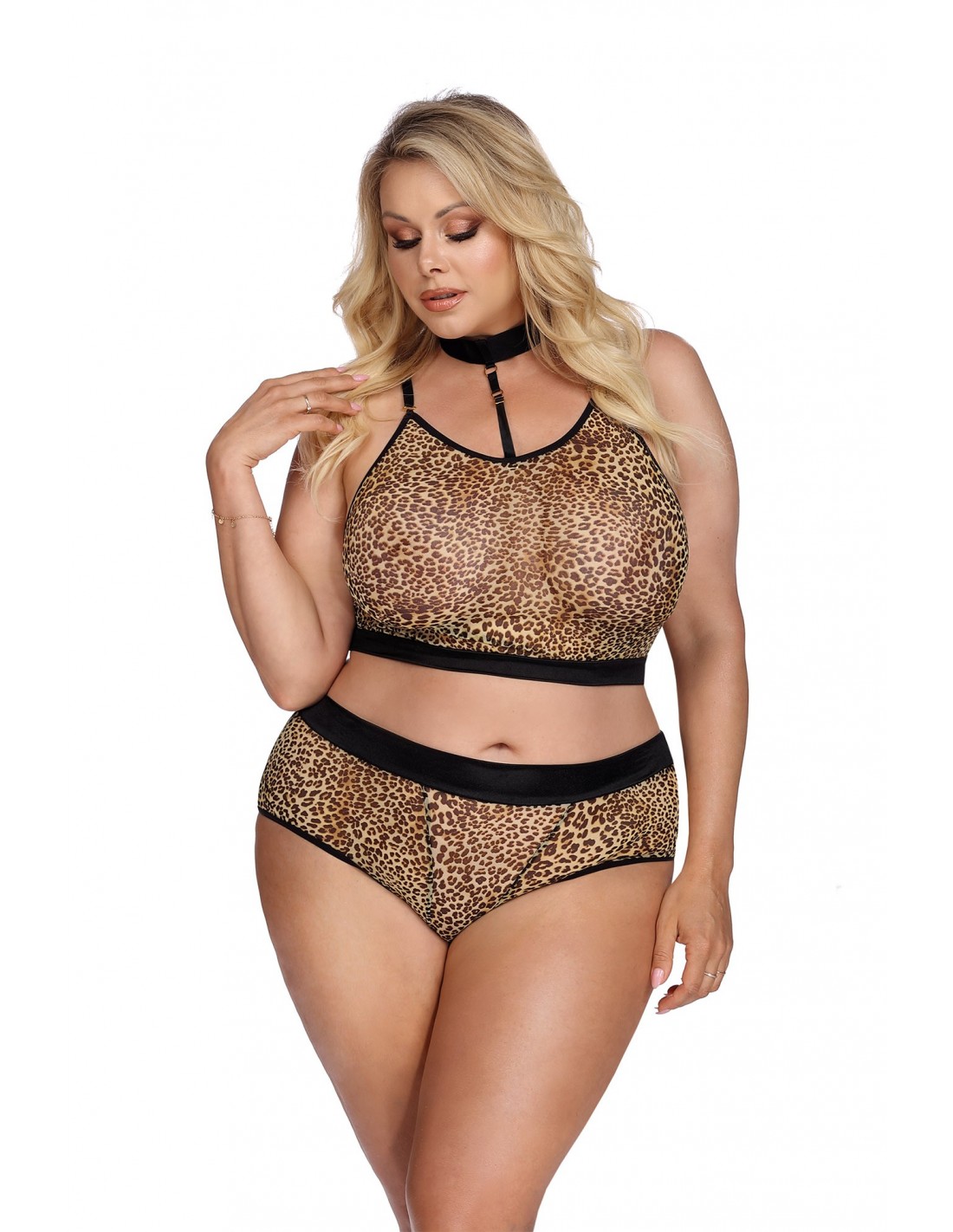 Marcianna Set to kompletny zestaw bielizny erotycznej, który zapewni Ci niezapomniane doznania i wyjątkowy wygląd. Składający się z krótkiego topu oraz wygodnych majteczek, ten dwuczęściowy komplet z nadrukiem w panterkę jest idealny dla kobiet, które chcą poczuć się seksownie i pewnie.