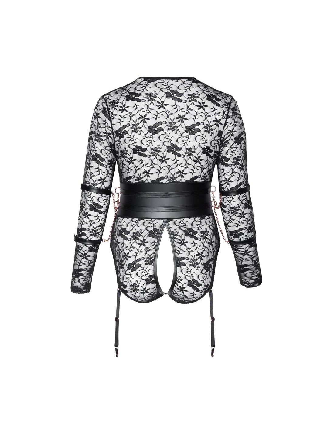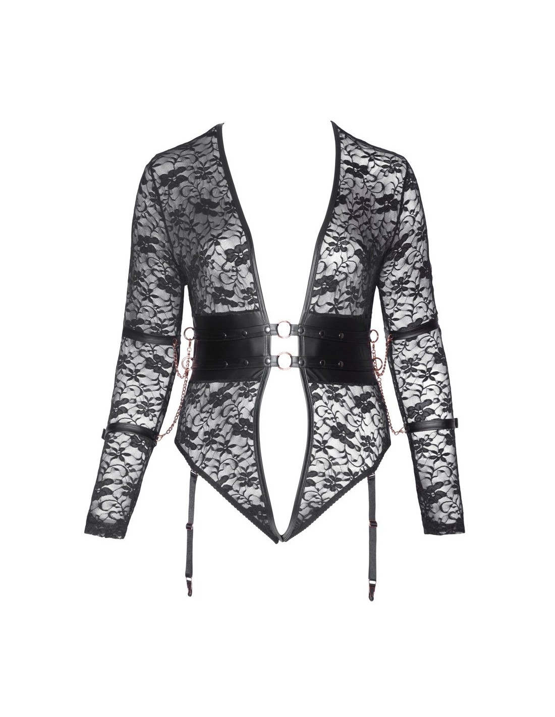 Body Bondage XL to połączenie wyrafinowanego wzornictwa i najwyższej jakości materiałów. Wykonane z miękkiej i elastycznej koronki, body zapewnia niezwykły komfort noszenia. Matowe wykończenie wokół talii oraz elementy w kolorze różowego złota dodają mu wyjątkowego uroku.