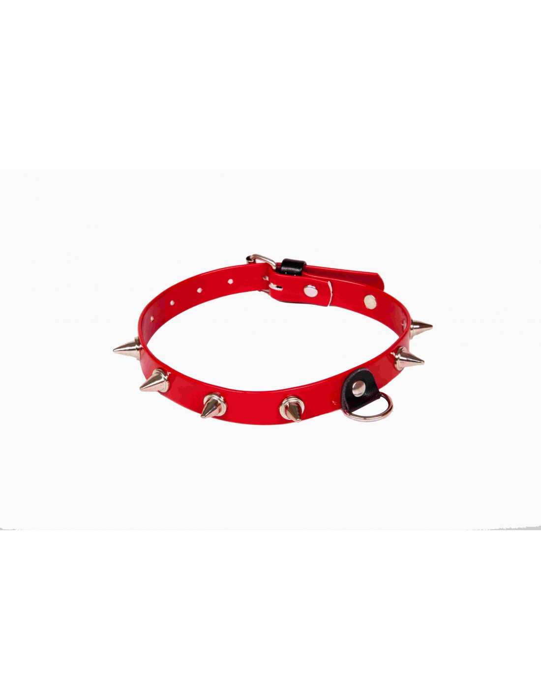 Wiązania-WHIPS lakier, obroża damska z kolcami, czerwona