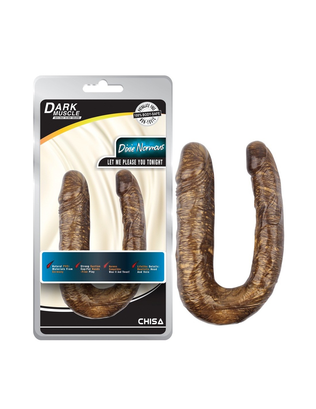 Podwójny Sztuczny Penis Dixie Normous-Gold został zaprojektowany tak, aby jak najwierniej odtwarzać wygląd męskiego penisa. Dzięki temu możesz cieszyć się nie tylko wspaniałymi wrażeniami wizualnymi, ale także intensywnymi doznaniami fizycznymi. Symuluj seks analny i waginalny i czerp jeszcze więcej przyjemności niż zwykle. Ten niezwykły produkt od DarkMuscle zapewni Ci niezapomniane chwile pełne ekstazy i rozkoszy.