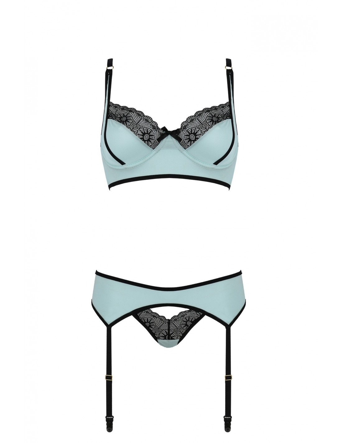 Wykonany z delikatnej koronki i satyny w uroczych odcieniach mięty, SIDRA SET to połączenie fenomenalnego designu i perfekcyjnego wykonania. Każdy detal został dopracowany do perfekcji, aby podkreślić piękno kobiecego ciała i sprawić, że poczujesz się niezwykle atrakcyjnie.