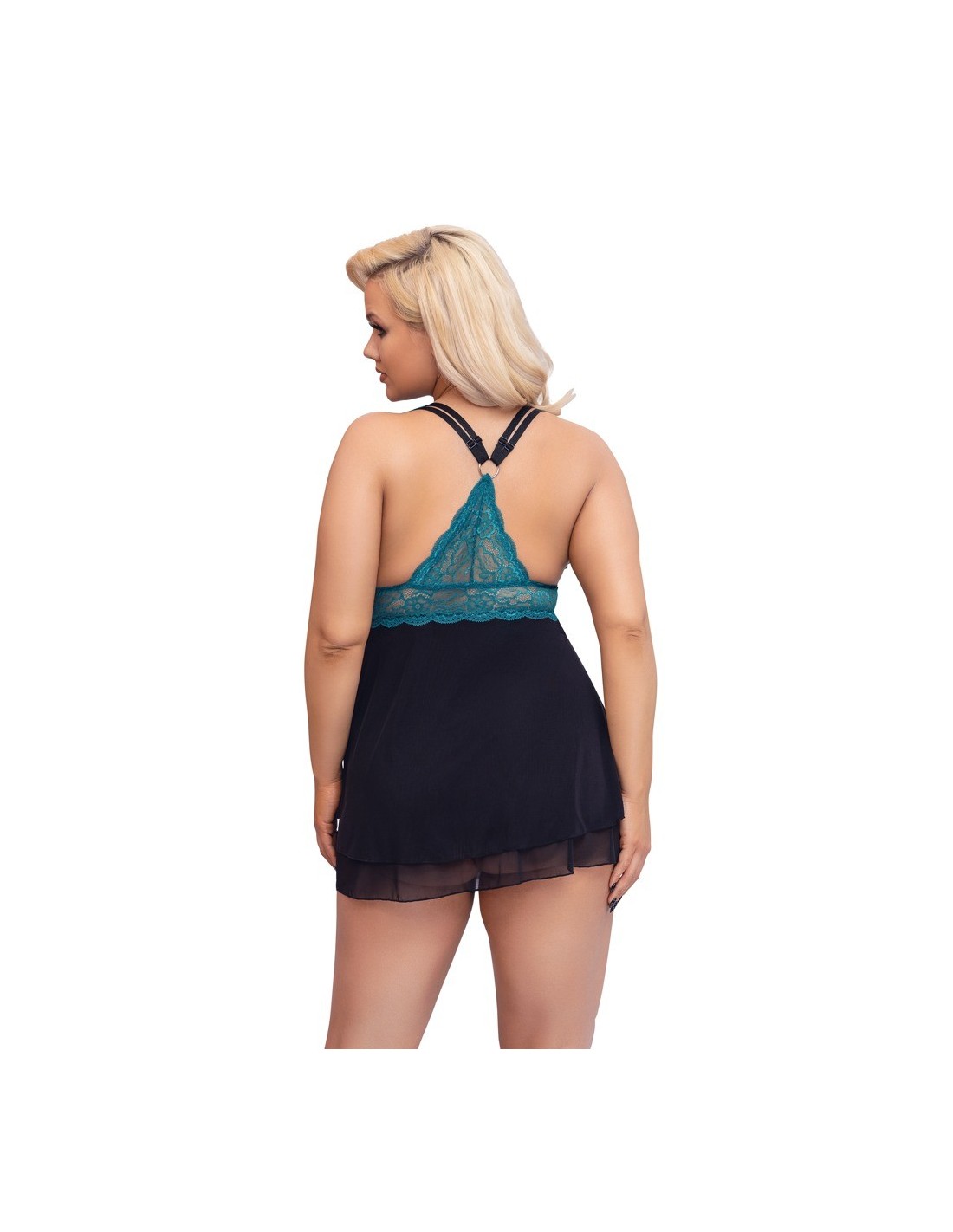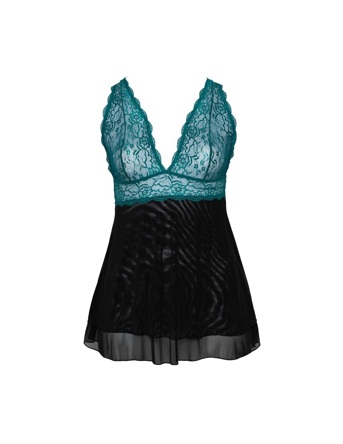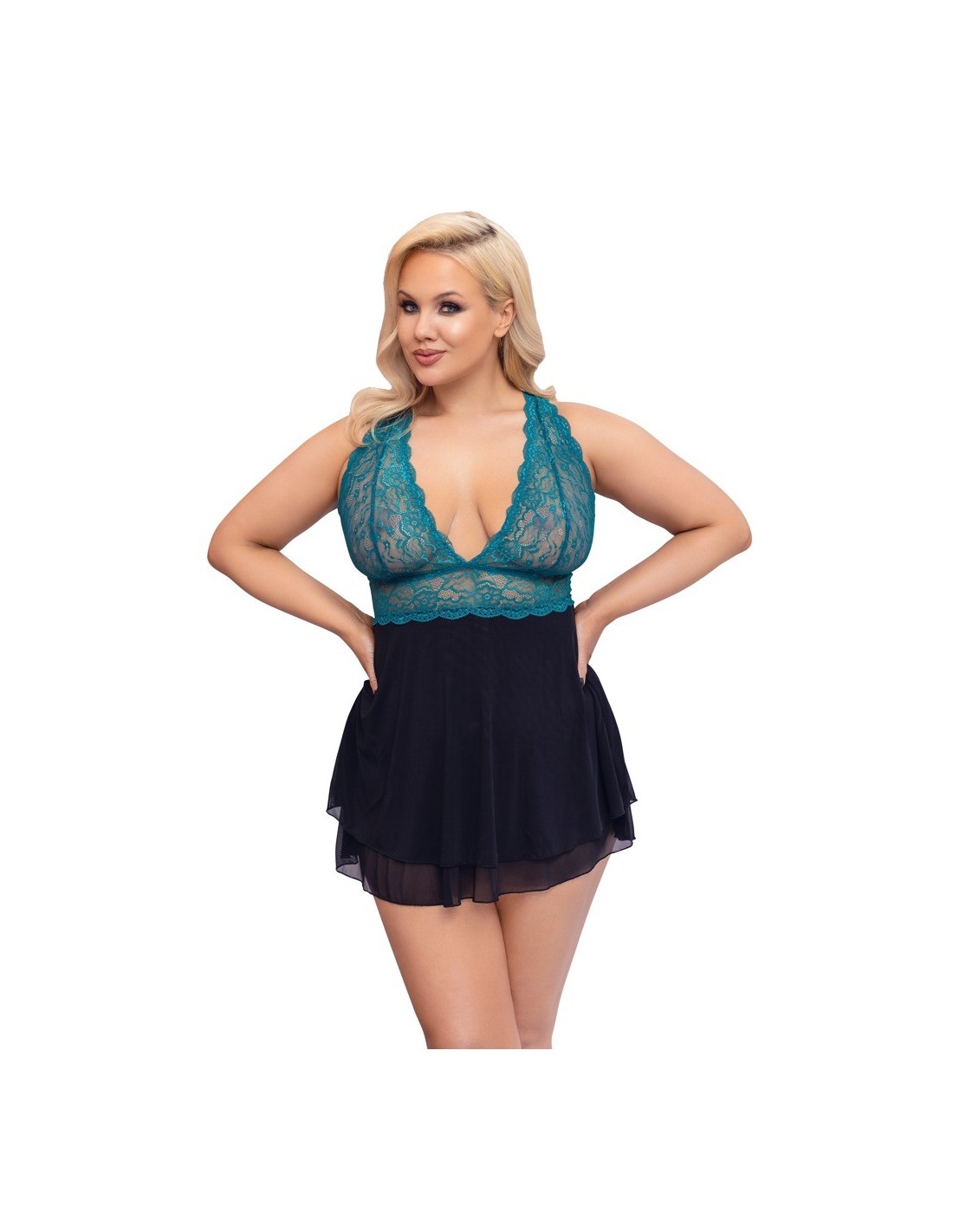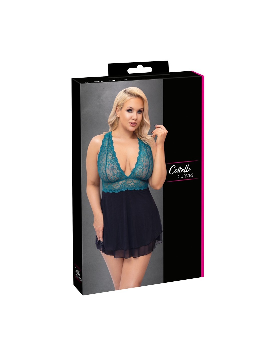 Zaprezentuj się w niezwykle zmysłowym stylu dzięki krótkiej babydoll w kolorze benzyny z kolekcji Cottelli CURVES. Składa się ona z dwóch części, które tworzą niepowtarzalny efekt. Ciasno przylegająca górna część wykonana jest z delikatnej koronki w kolorze benzyny, natomiast spódniczka wykonana jest z podwójnej warstwy czarnego powernetu, która pięknie układa się na ciele. Wycięcie w okolicy dekoltu jest uwodzicielsko głębokie, podkreślając Twoje wdzięki.