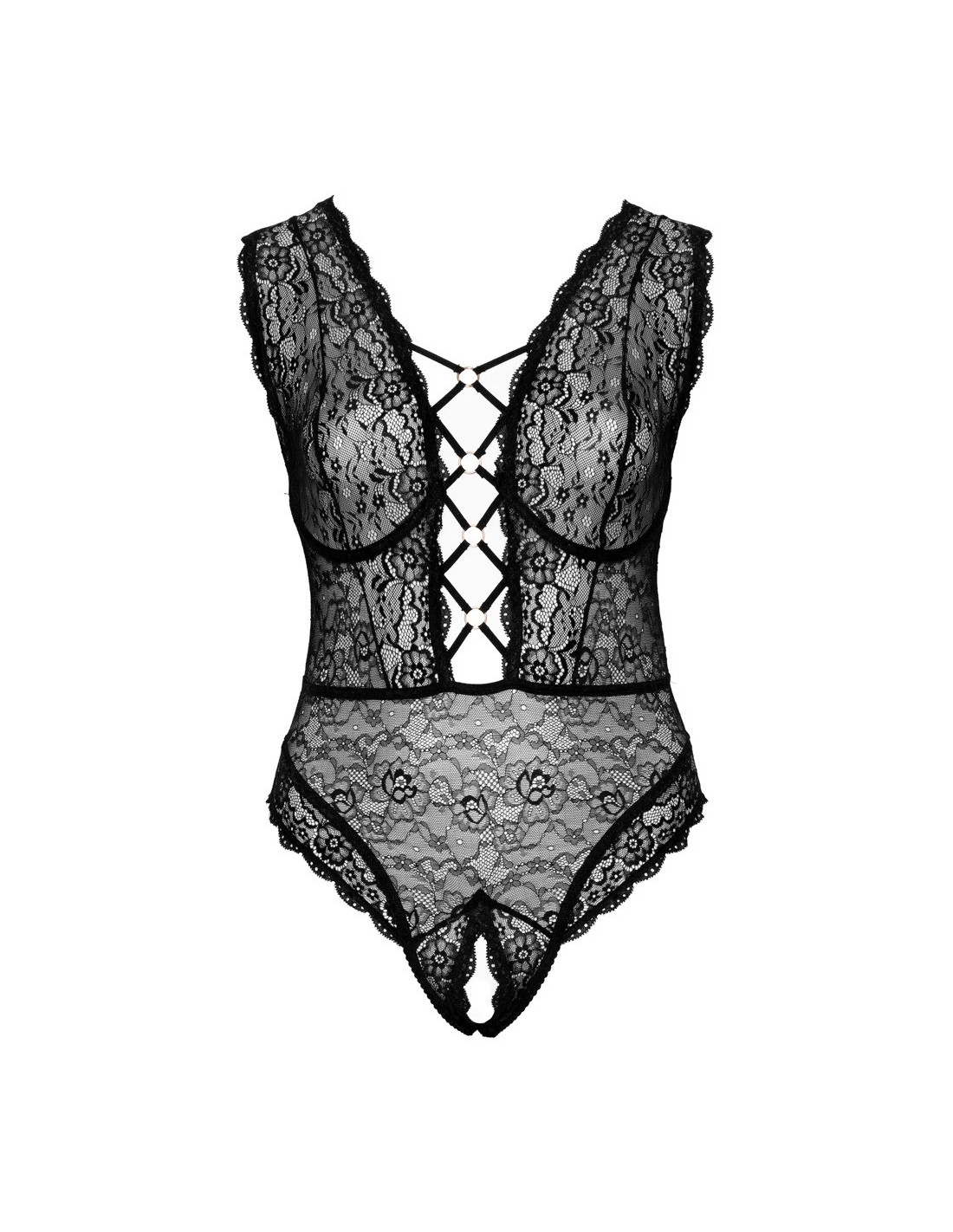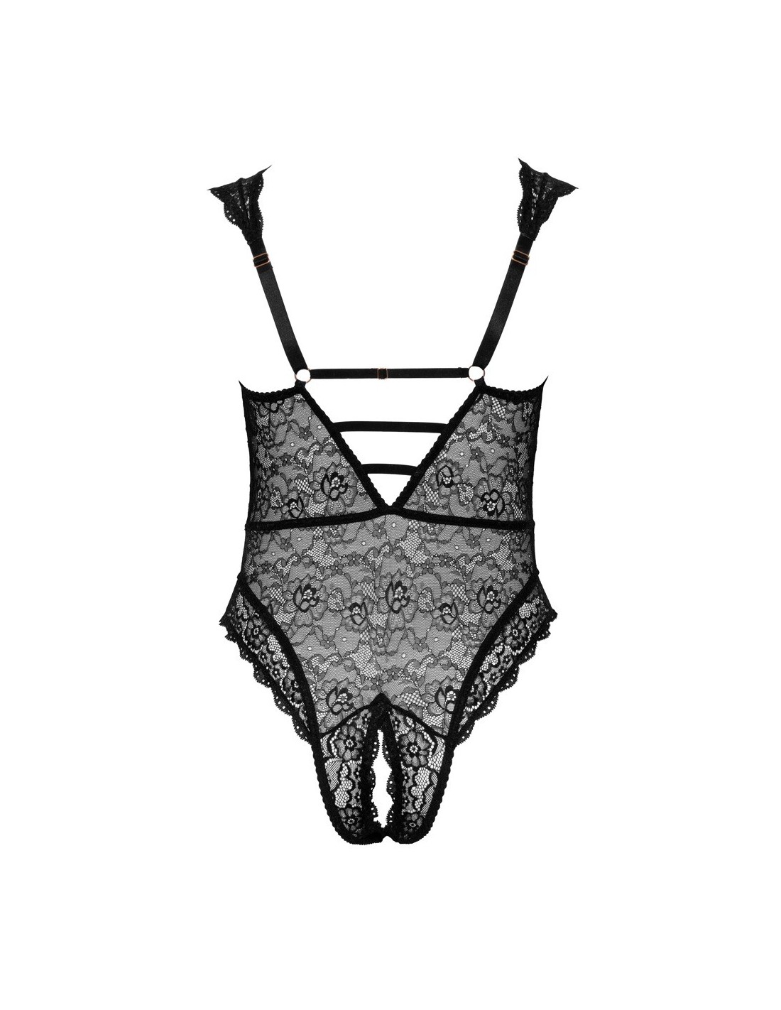 Zapomnij o nudnej bieliźnie i odkryj swoją prawdziwą sensualność z crotchless body marki Cottelli CURVES. To wyjątkowe body zostało wykonane z delikatnej koronki i ozdobione różowo-złotymi detalami.