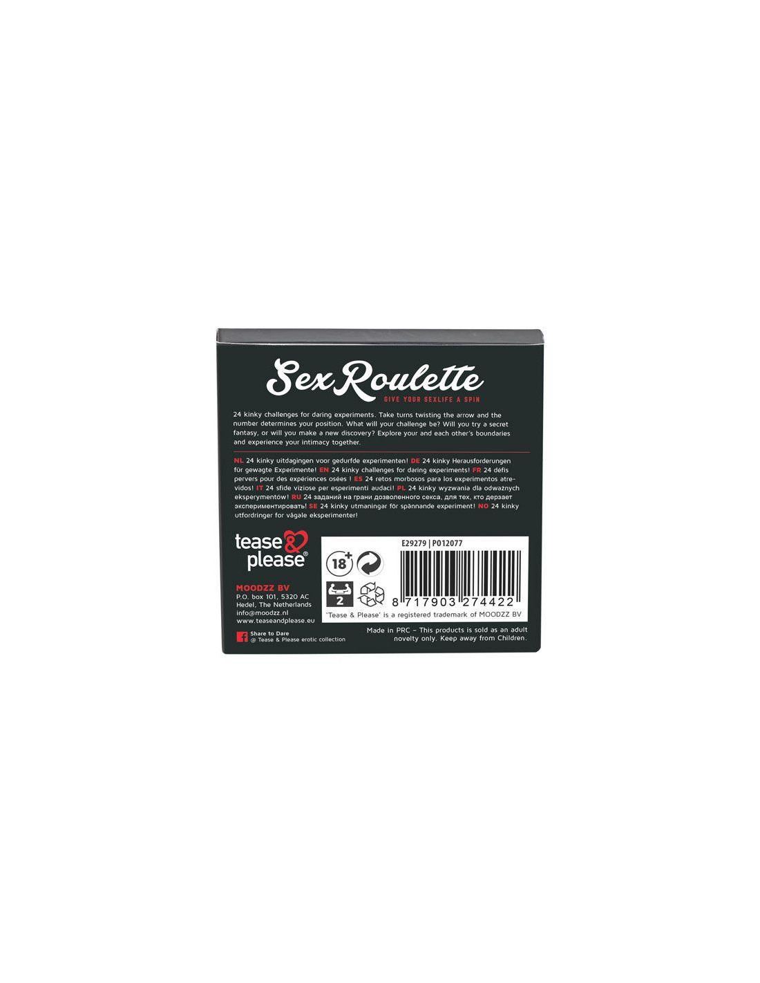 Sex Roulette to najnowsza gra autorstwa Tease and Please. Rozpal erotyczne podniecenie w swoim życiu miłosnym jednym ruchem strzałki na tablicy. Strzałka wskazuje liczbę, która decyduje o czekającym na Ciebie ryzykownym wyzwaniu.