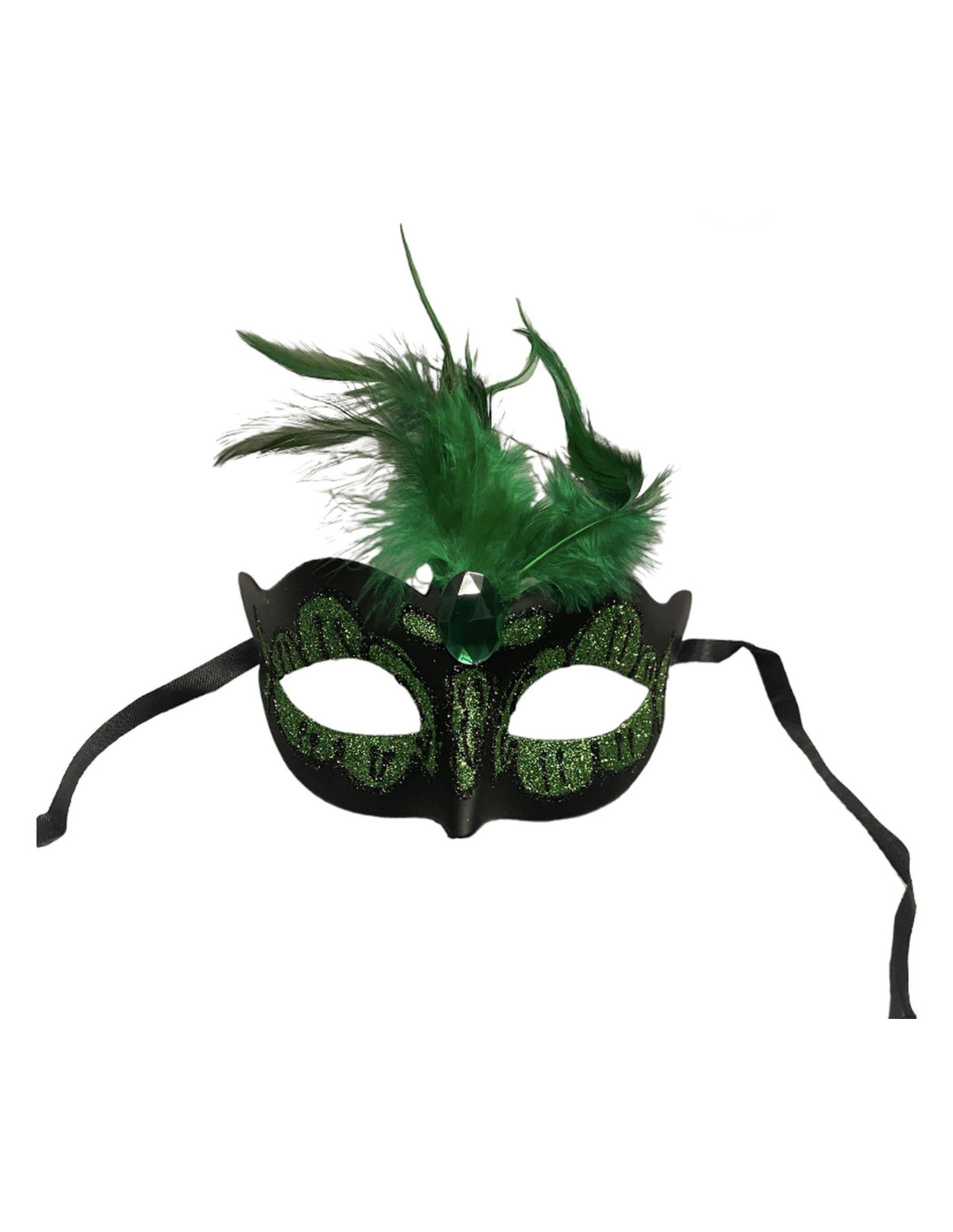 Maska-Venetian Mask Green with Green Stone and Feather