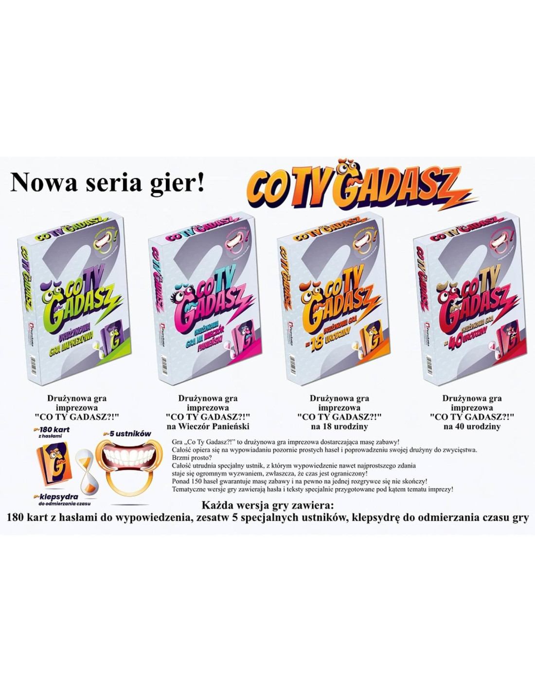-Zawiera 180 kart z hasłami,