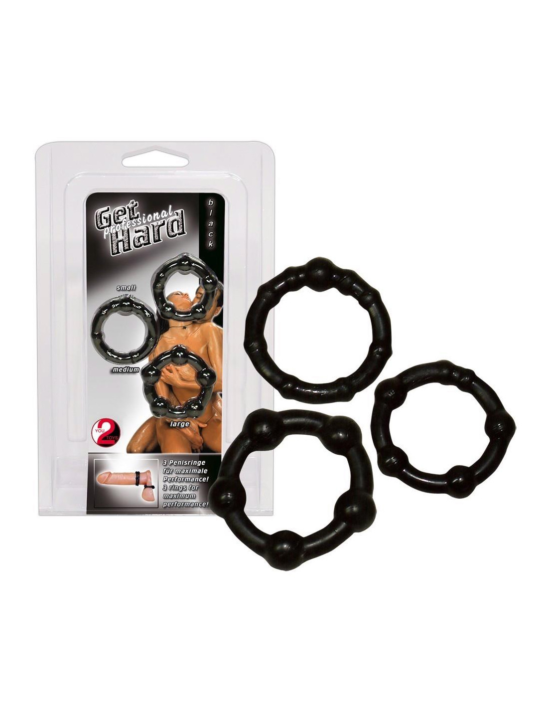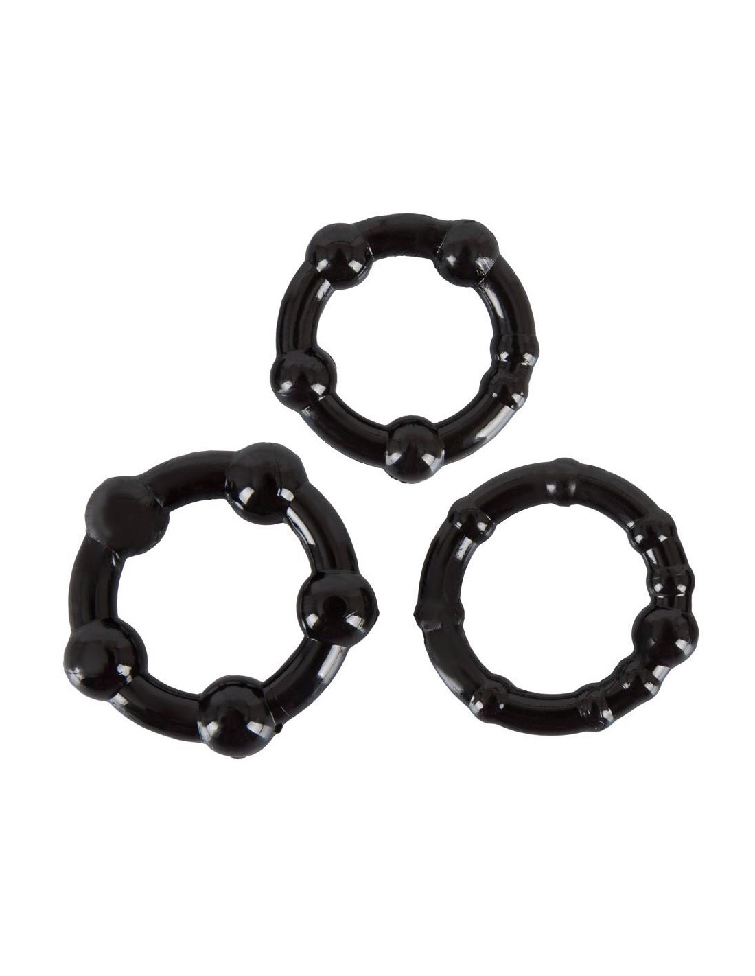 Te różnie nubbingowane pierścienie na penisa w rozciągliwym średnica 3-4 cm (wewnątrz 2-2,5 cm) mogą ogromnie wydłużyć okres erekcji poprzez idealne dopasowanie i jednocześnie zapewnić silne efekty stymulacyjne. Może być stosowany pojedynczo lub w połączeniu. Wykonane z bardzo rozciągliwego materiału silikonopodobnego, dlatego idealnie nadają się również do sznurowania jąder. TPE.