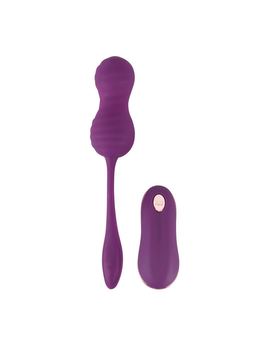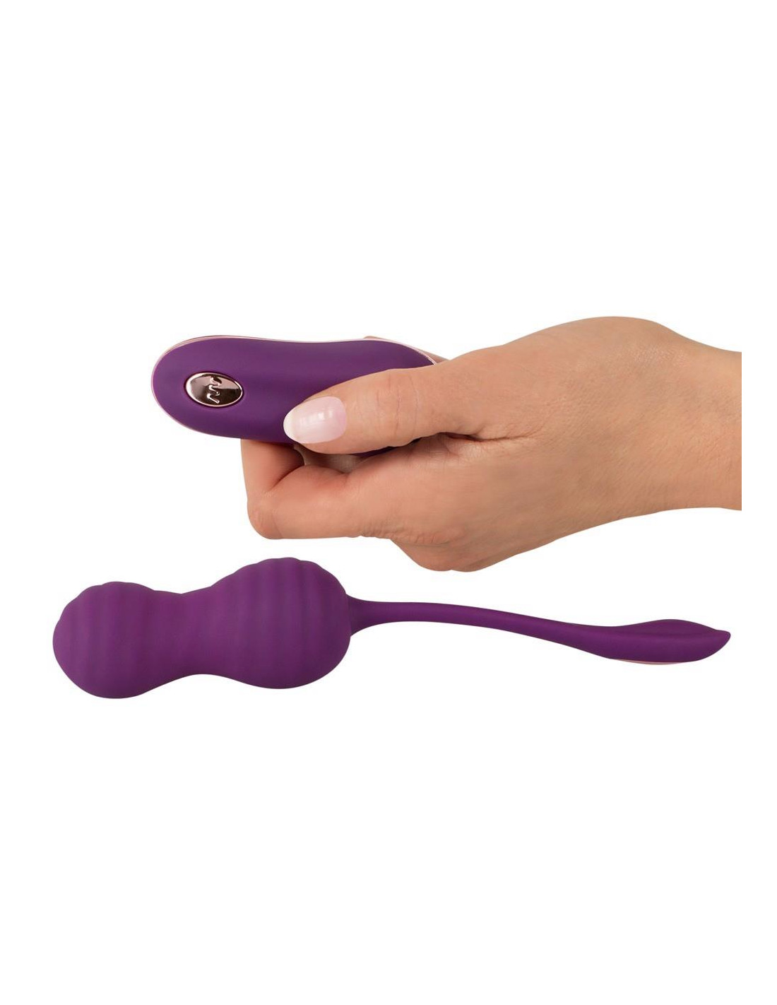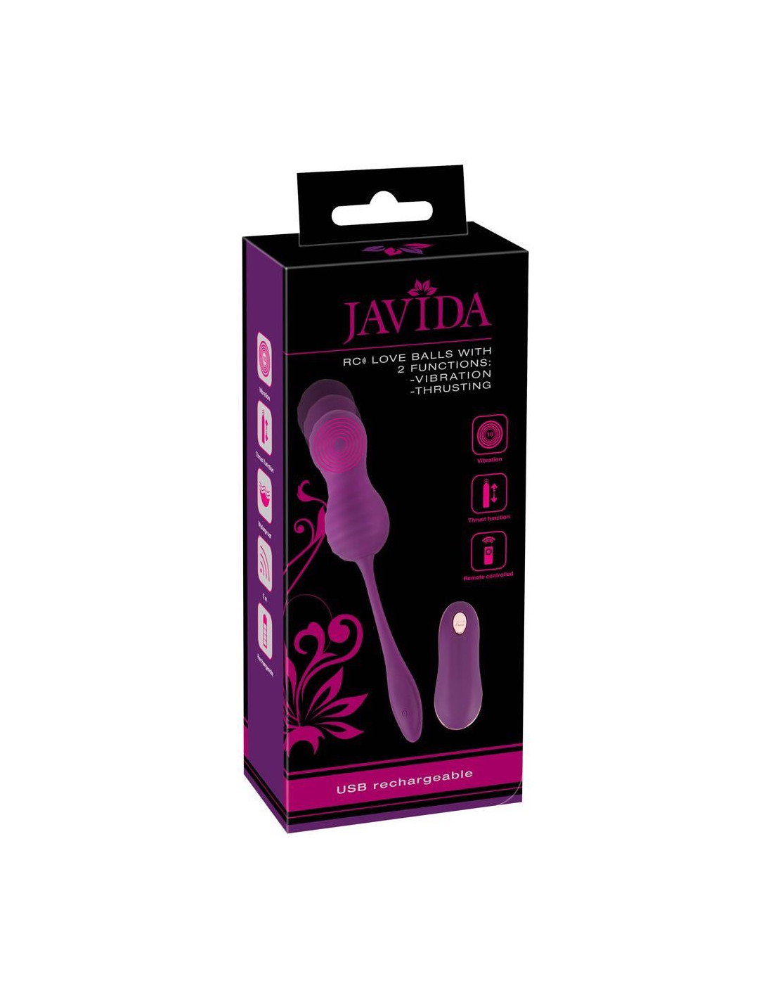 Rechargeable vibro-balls RC Love Balls with 2 Functions from Javida with vibration and a thrust function in the tip. The 10 whisper-quiet, but intensely pulsating modes can be controlled conveniently with the buttons on the remote control. The range of 5 metres means that a partner can also control the modes for surprising moments of pleasure and exciting control games.